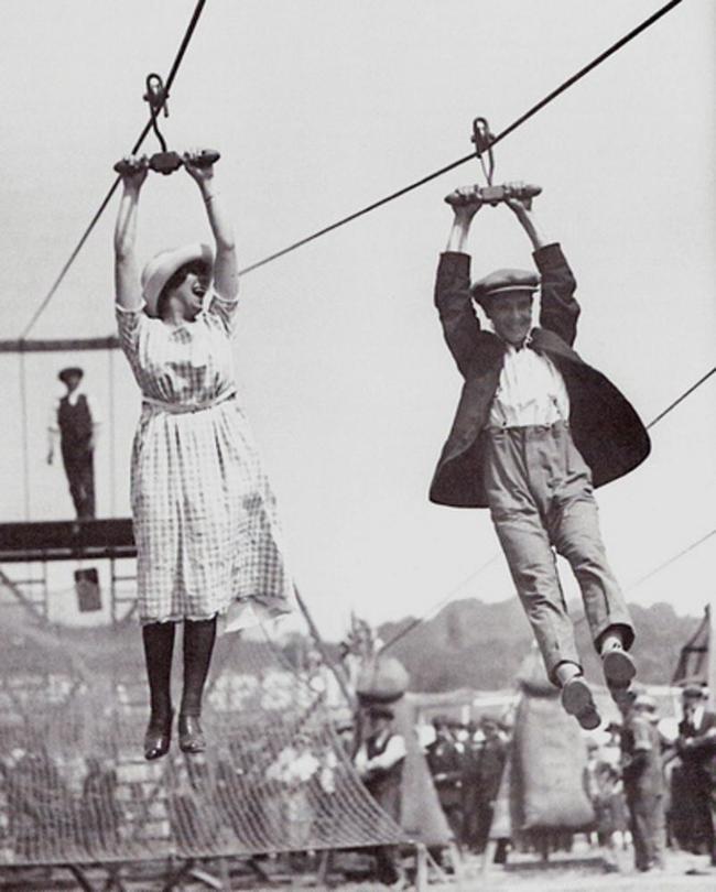 Пара наслаждается катанием на канатной дороге в выходной день (1923)