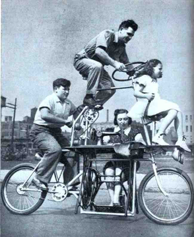 Велосипед для семьи из четырёх человек плюс ножная швейная машина (1939)