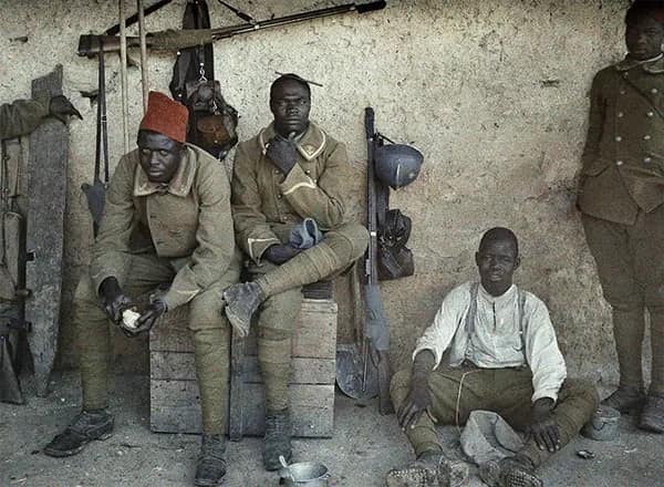 Впечатляющий автохромный снимок 1917 года: сенегальские солдаты французской армии отдыхают между боями