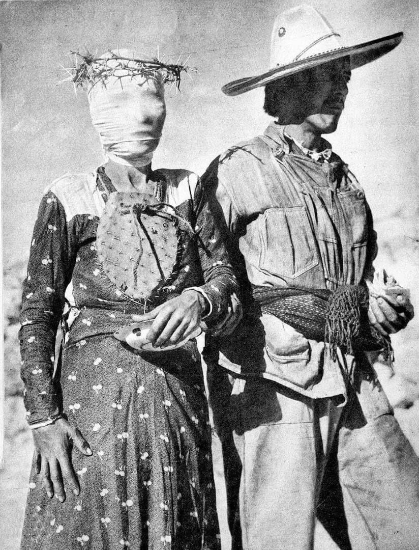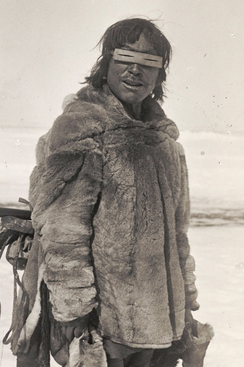 Карибу-инук из Арктики, 1921 год: на нём традиционные снежные очки с узкими прорезями, которые уменьшали блики от снега и защищали глаза от снежной слепоты - простое, но идеально адаптированное к суровым условиям решение