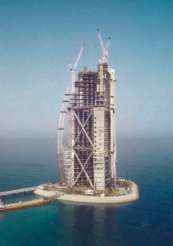 Строительство Бурдж Аль–Араб, Дубаи, 1998 год.