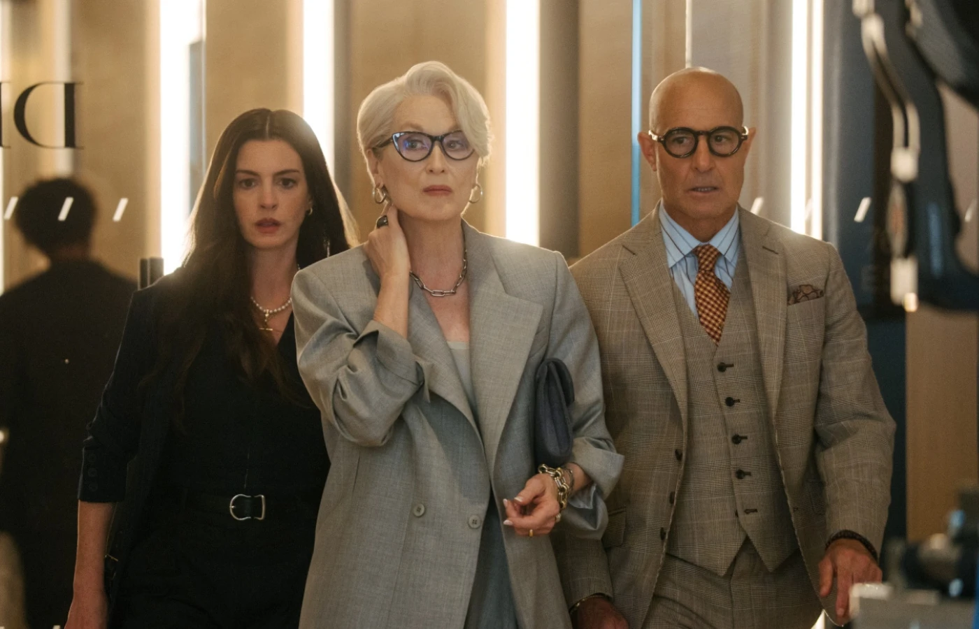 Кстати, о касте. Мэрил Стрип и Энн Хэтэуэй будто и не расставались на двадцать лет. Химия между ними всё та же, только теперь в ней больше взаимного уважения, что ли. Важно и то, что Стэнли Туччи в роли Найджела снова крадет каждую сцену, в которой появляется. Острый язык, ирония, безупречный стиль - всё на месте.
