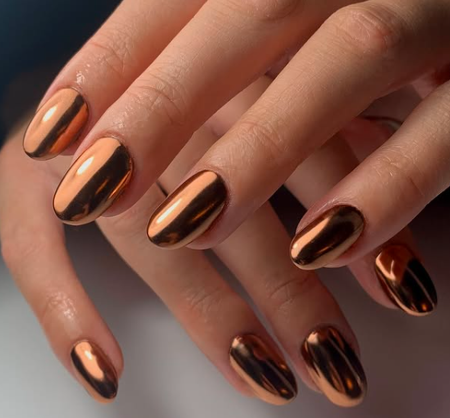 Блестящий, будто отлитый из солнечного золота. Особенно красиво смотрится на коротких ногтях.