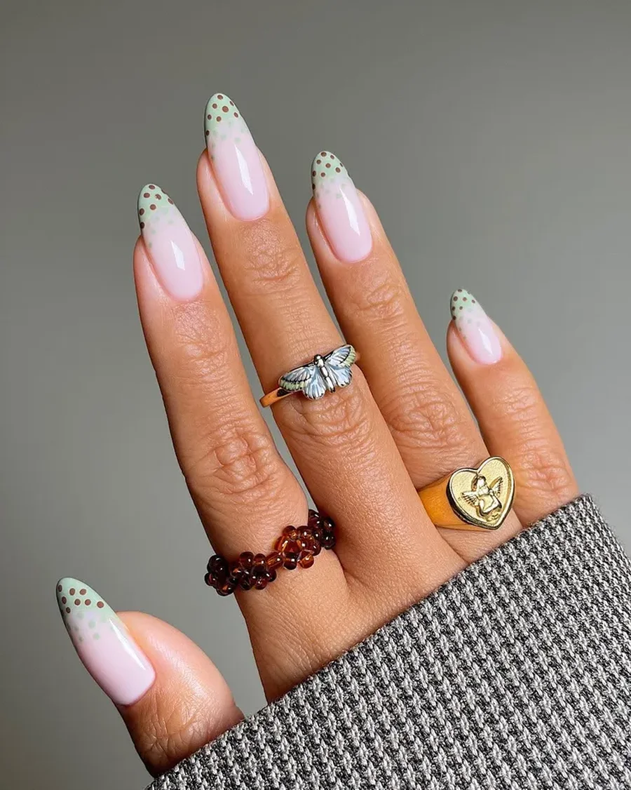 Мятный френч с шоколадными точками - неожиданное, но гармоничное сочетание.