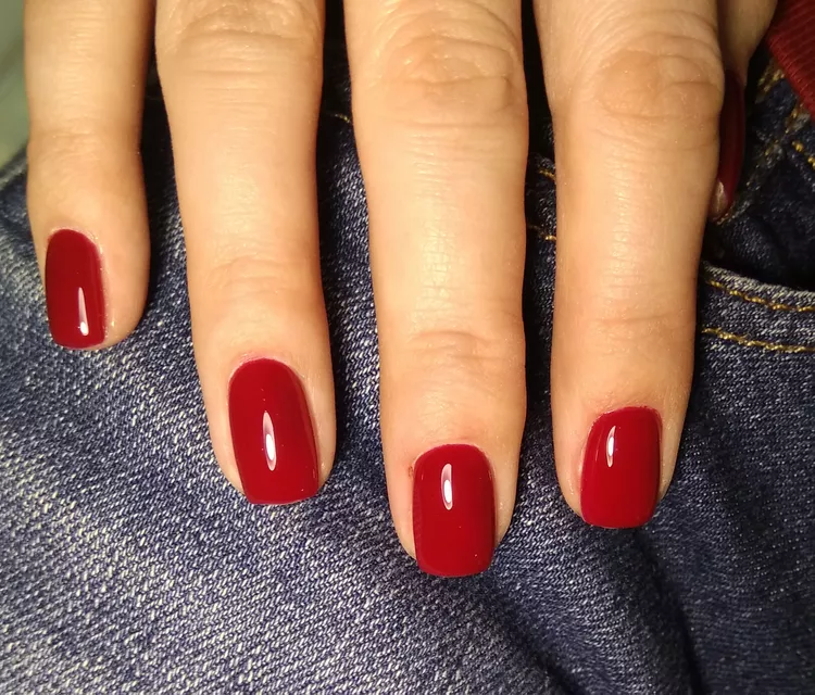 Как попросить в салоне: «Насыщенный вишнёвый без оранжевого подтона, плотное покрытие в два тонких слоя».