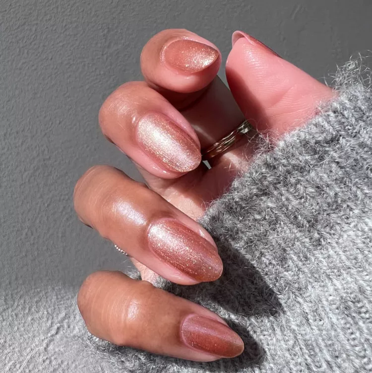 Как попросить в салоне: «Полупрозрачная база и тонкий перламутровый слой, чтобы был лёгкий эффект сияния, без хром‑пудры».