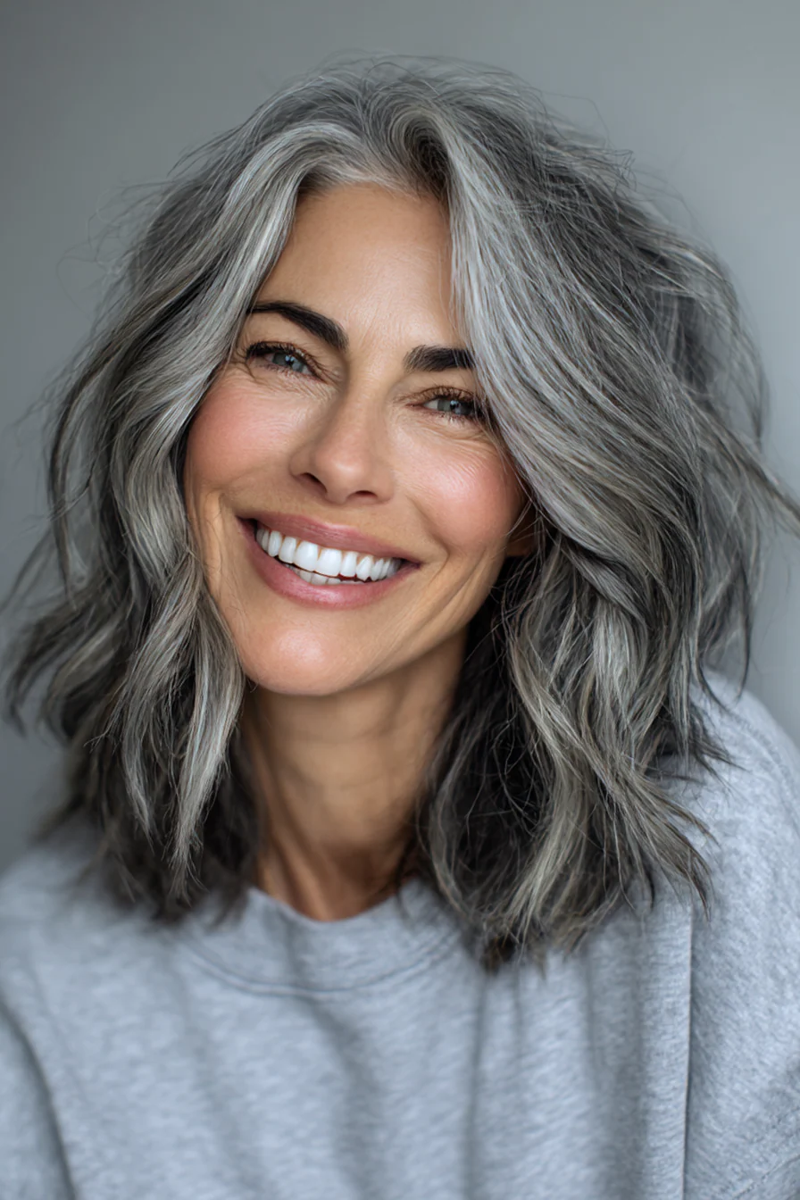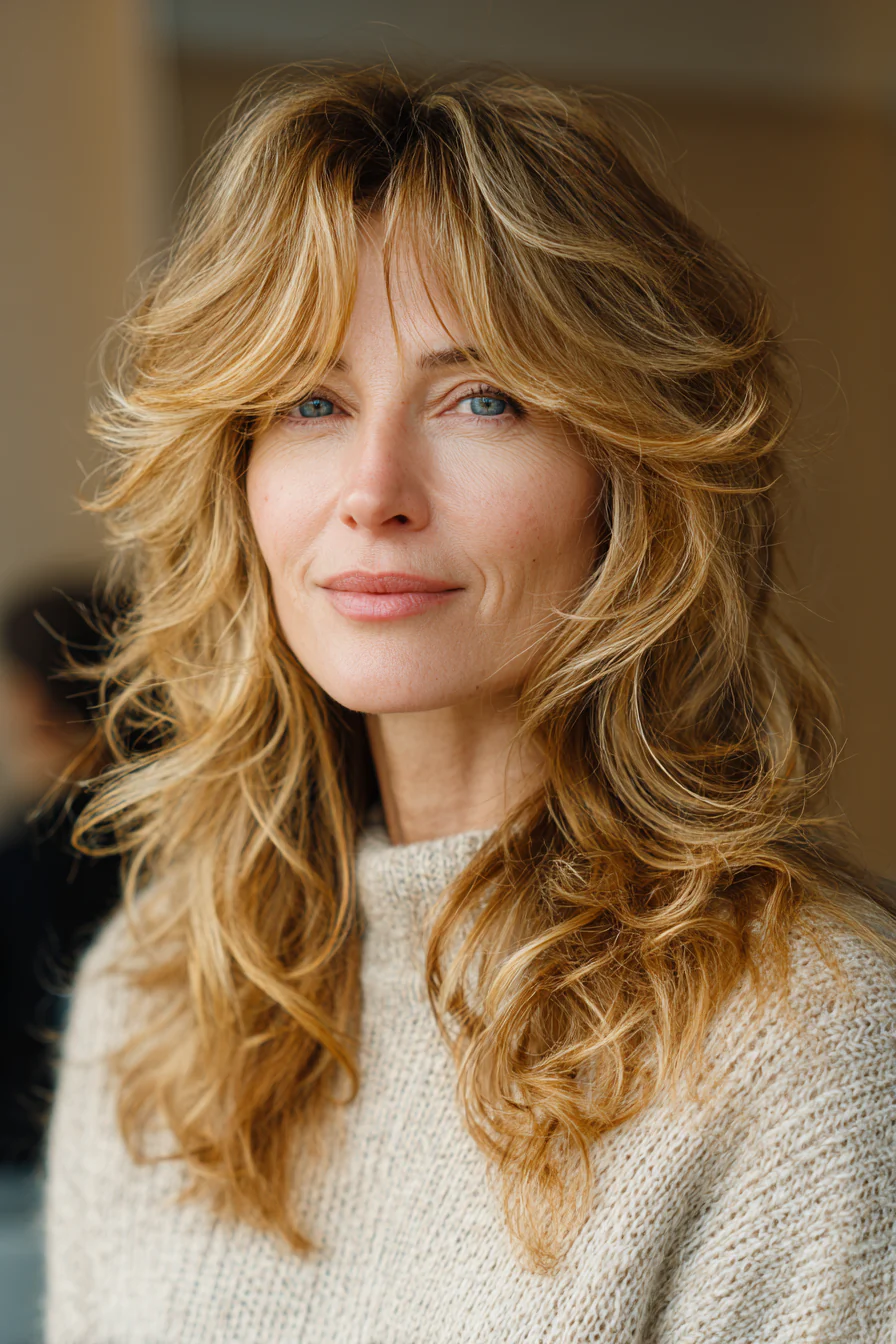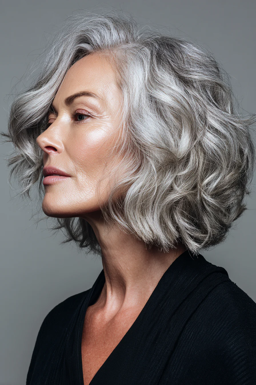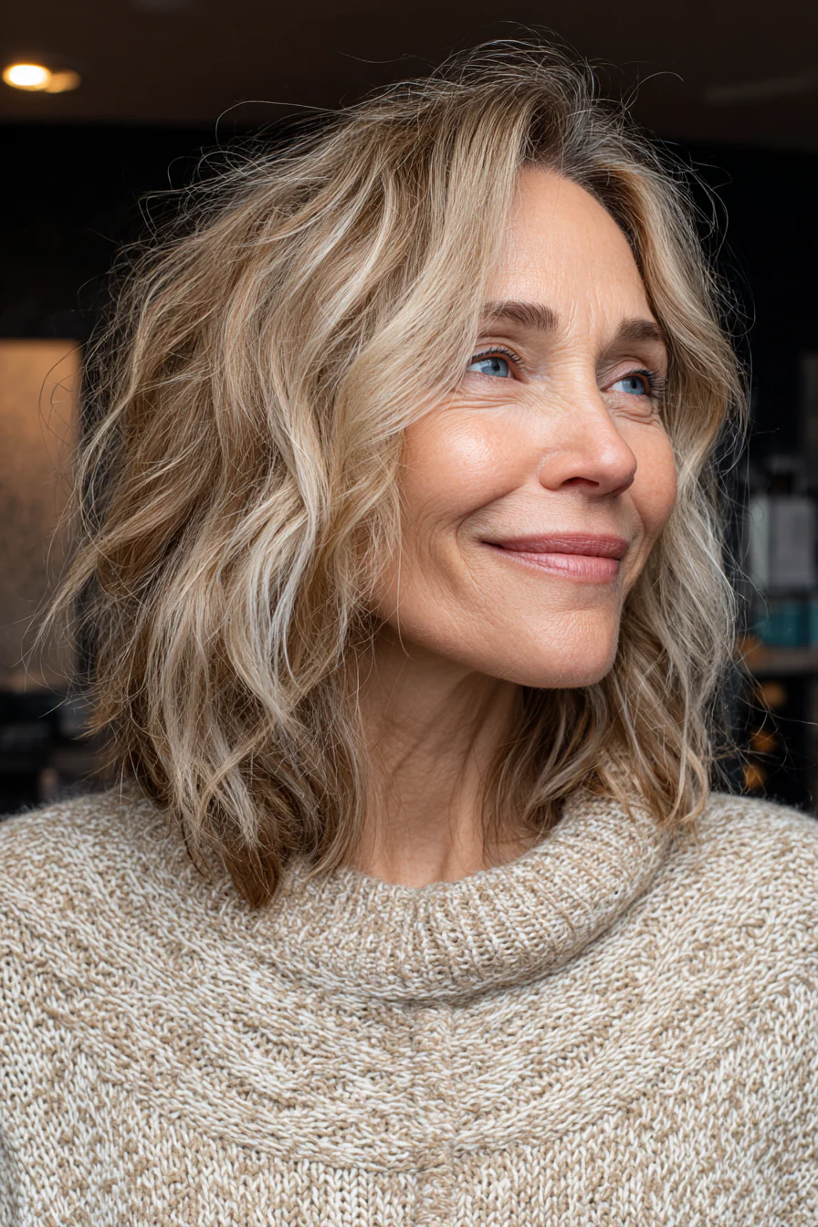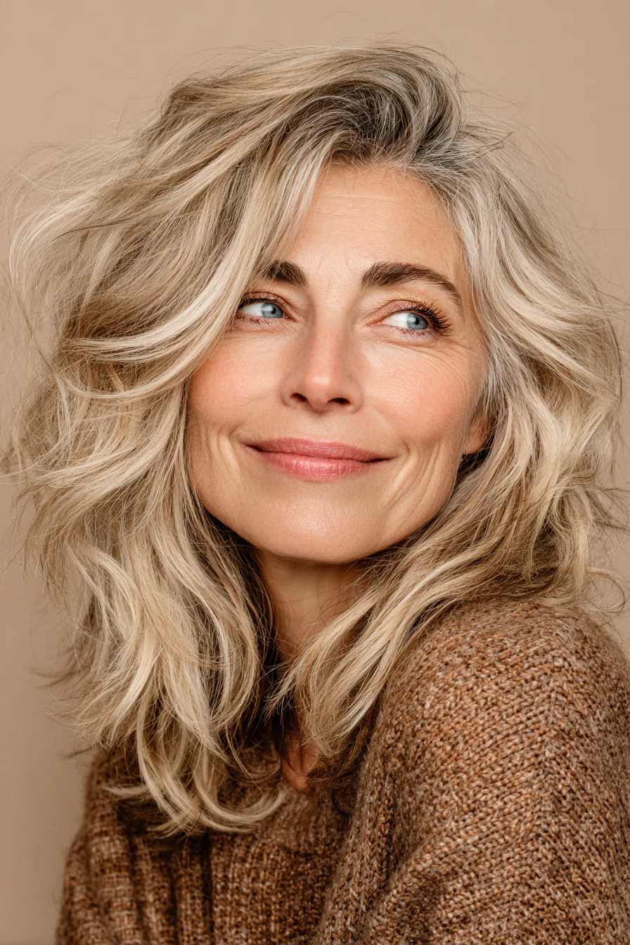 Пятидесятилетие - не время для осторожных решений. Напротив, это идеальный момент добавить текстуру, оттенок и новую форму. Волнистые волосы сами по себе создают движение, смягчают черты, помогают выглядеть естественно и собранно без усилий. Средняя длина попадает в ту самую золотую середину: хватает полотна для красивого обрамления лица, при этом укладка остаётся простой. Тенденции 2025 года про естественную текстуру, оттенки, которые освежают, и стрижки, что сотрудничают с волной, а не спорят с ней. От воздушных слоёв до пляжного шэга и глянцевого боба, эти идеи доказывают: шик не имеет возраста.