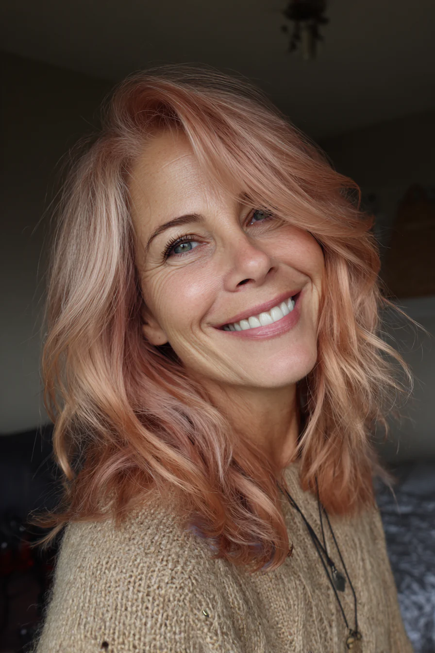 18. Длинные слои с лёгким оттенком «розовое золото»