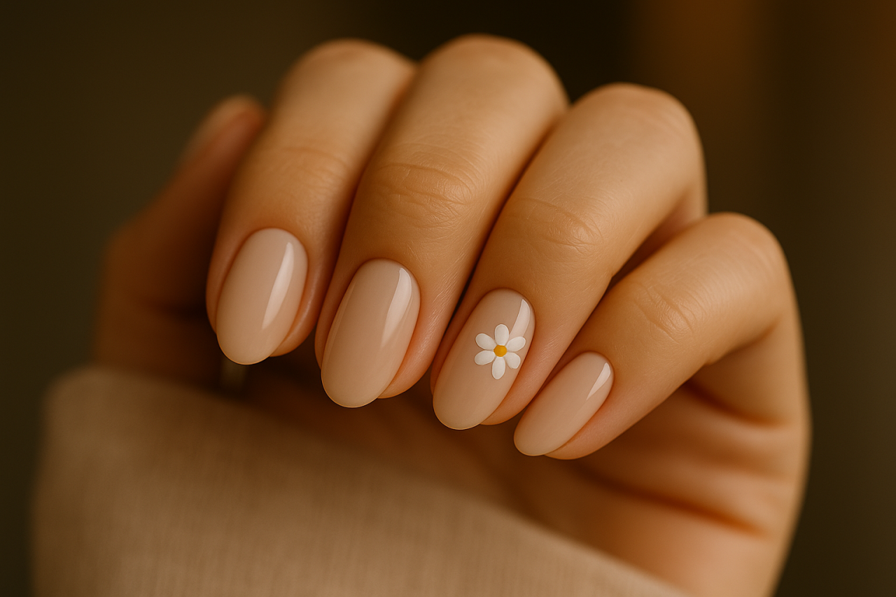 Офис: молочный нюд + микро-рисунок на одном пальце.