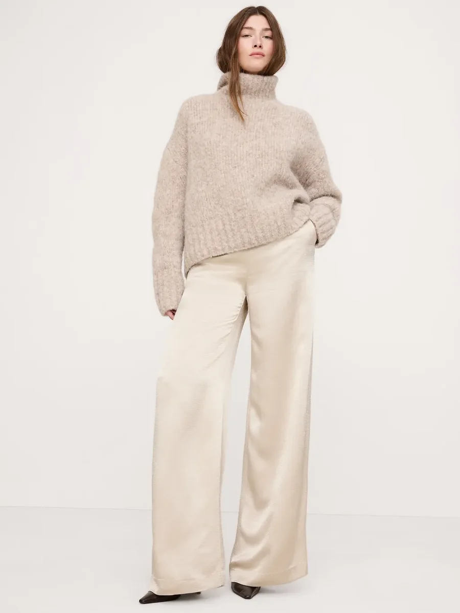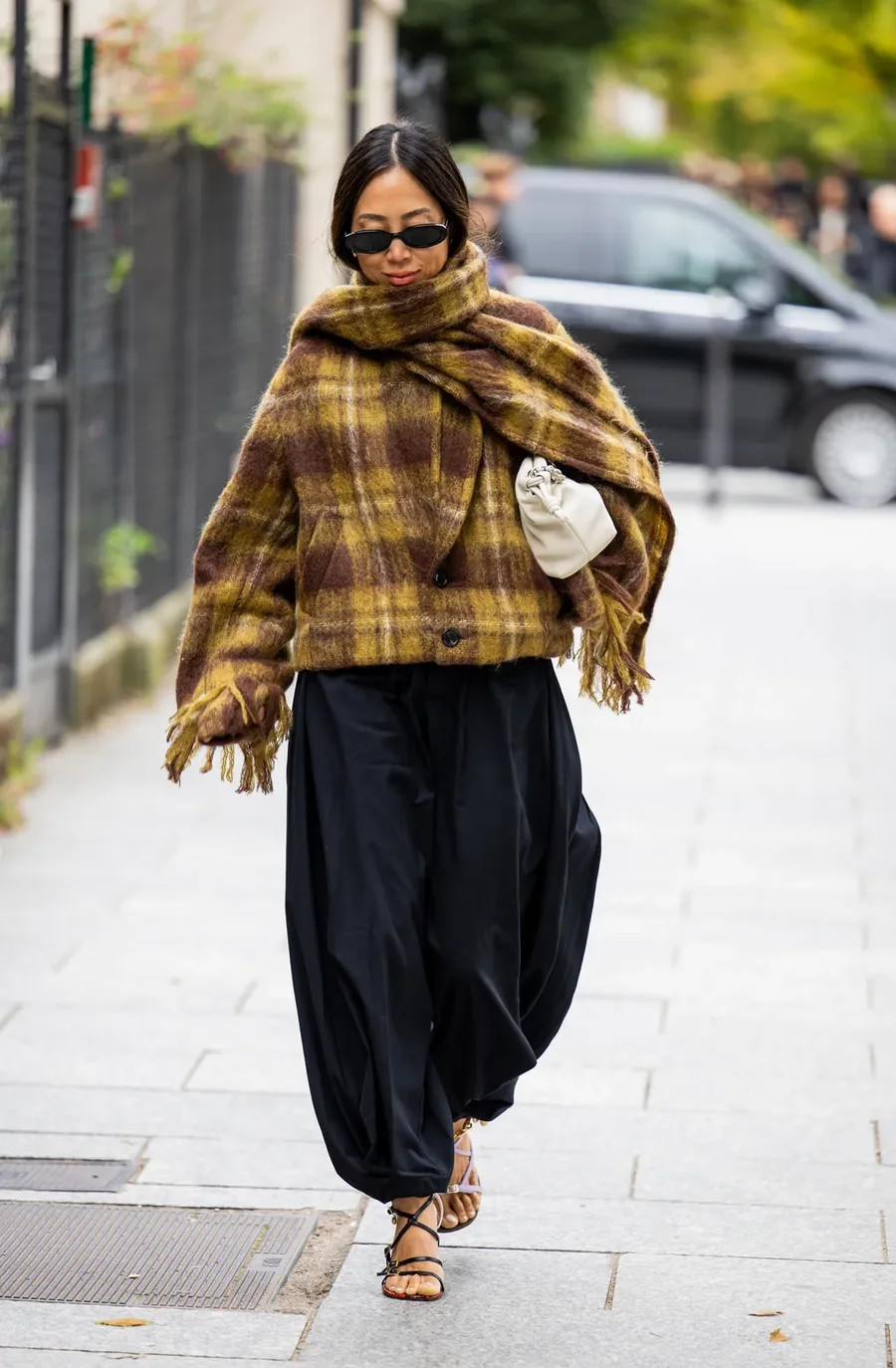 Брюки с широкими штанинами - вневременной тренд. Осенью 2025 они стали легче и мягче, сохранив при этом свой утончённый силуэт. Отлично смотрятся с укороченными жакетами и сапогами на каблуке.