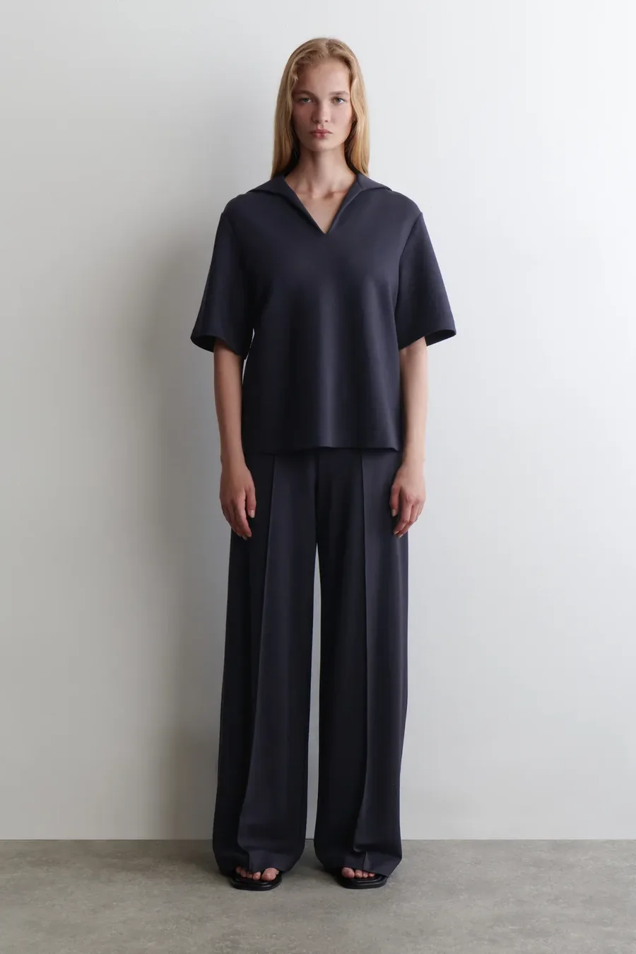 Брюки с широкими штанинами - вневременной тренд. Осенью 2025 они стали легче и мягче, сохранив при этом свой утончённый силуэт. Отлично смотрятся с укороченными жакетами и сапогами на каблуке.