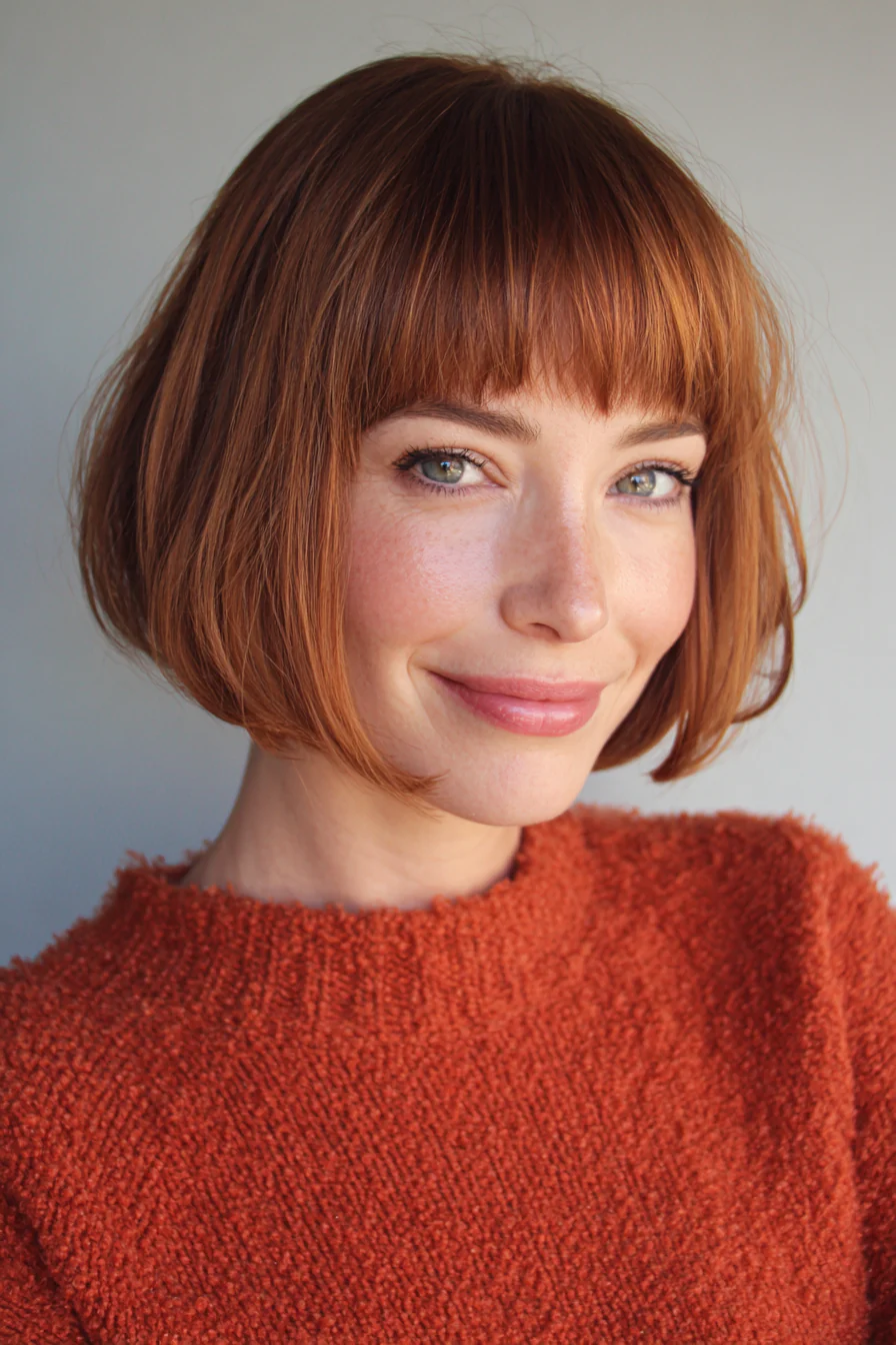 14. Классическое каре с округлой чёлкой в насыщенном медном