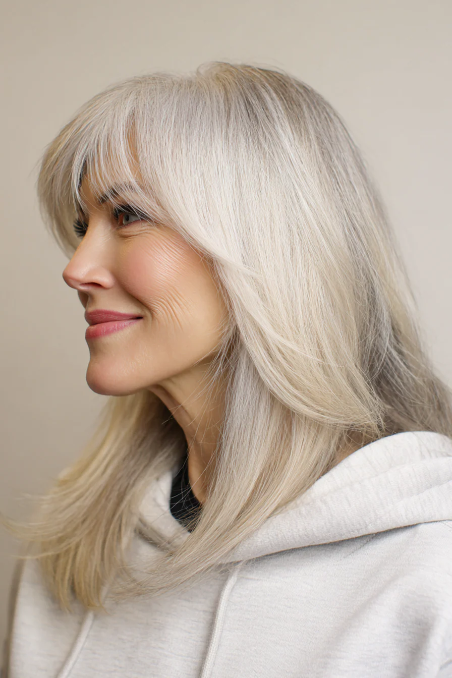21. Мягкие волны с боковой челкой в пепельном блонде