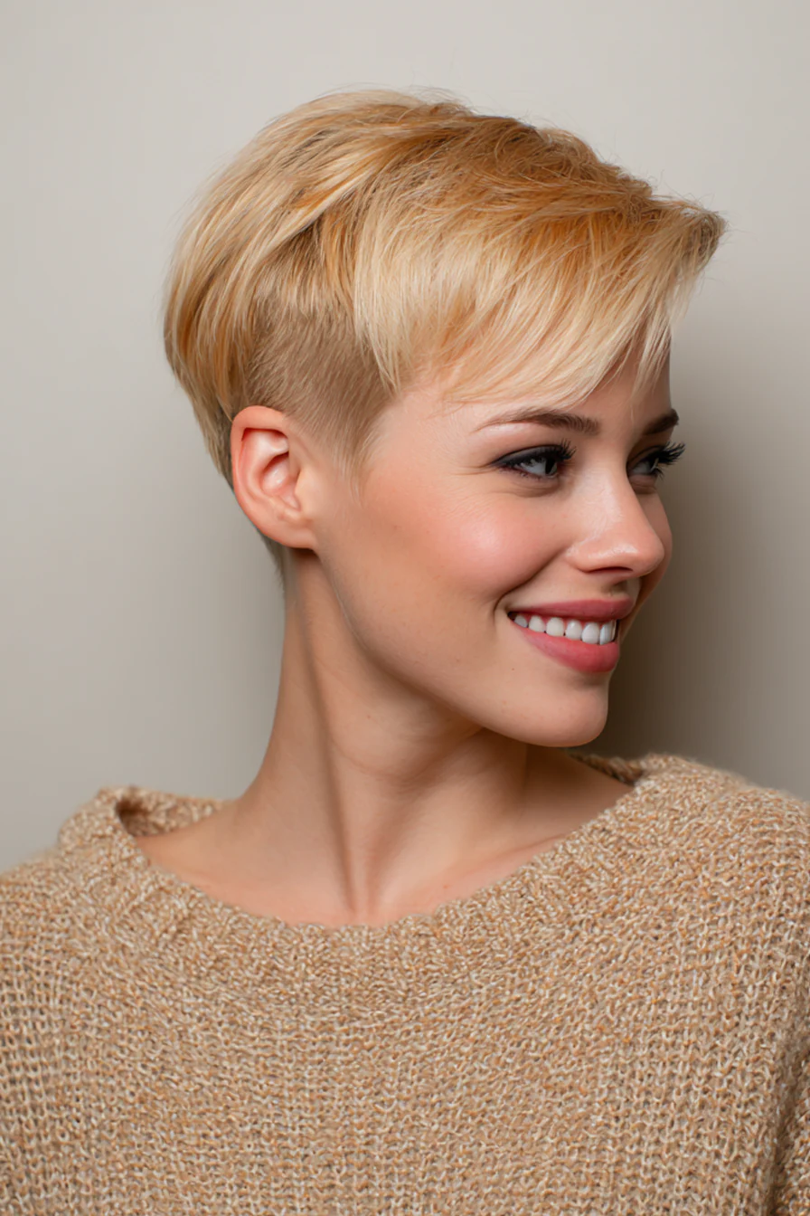 16. Тейпер- пикси с боковой чёлкой в оттенке золотой мед
