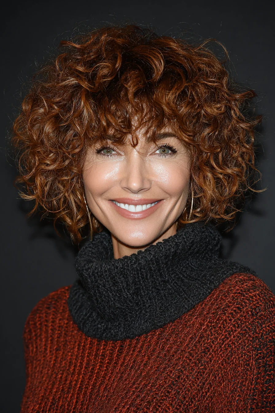 17. Кудрявое каре с воздушной челкой в корице