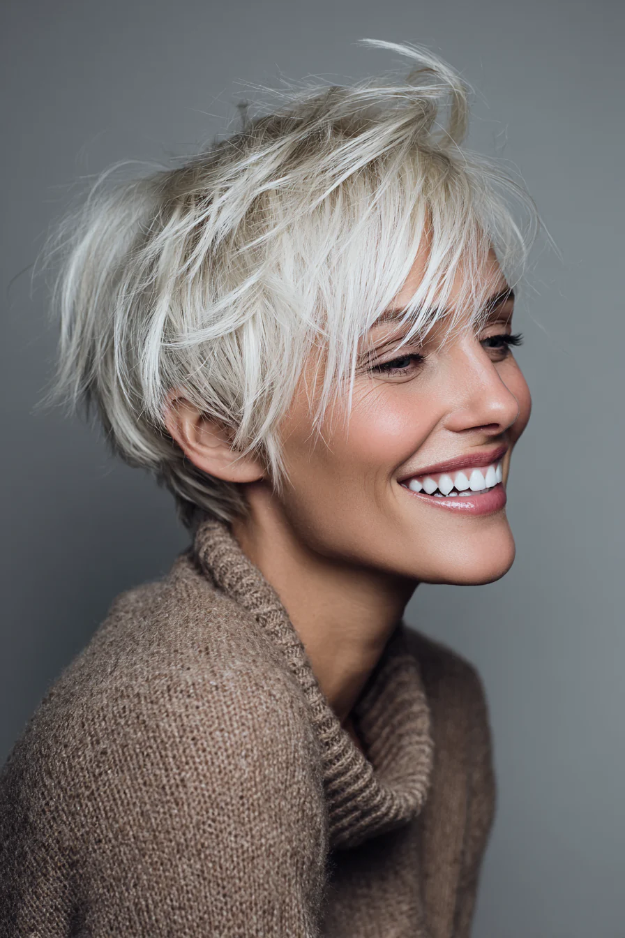 8. Слоистое пикси с перьевой челкой, платиновое серебро