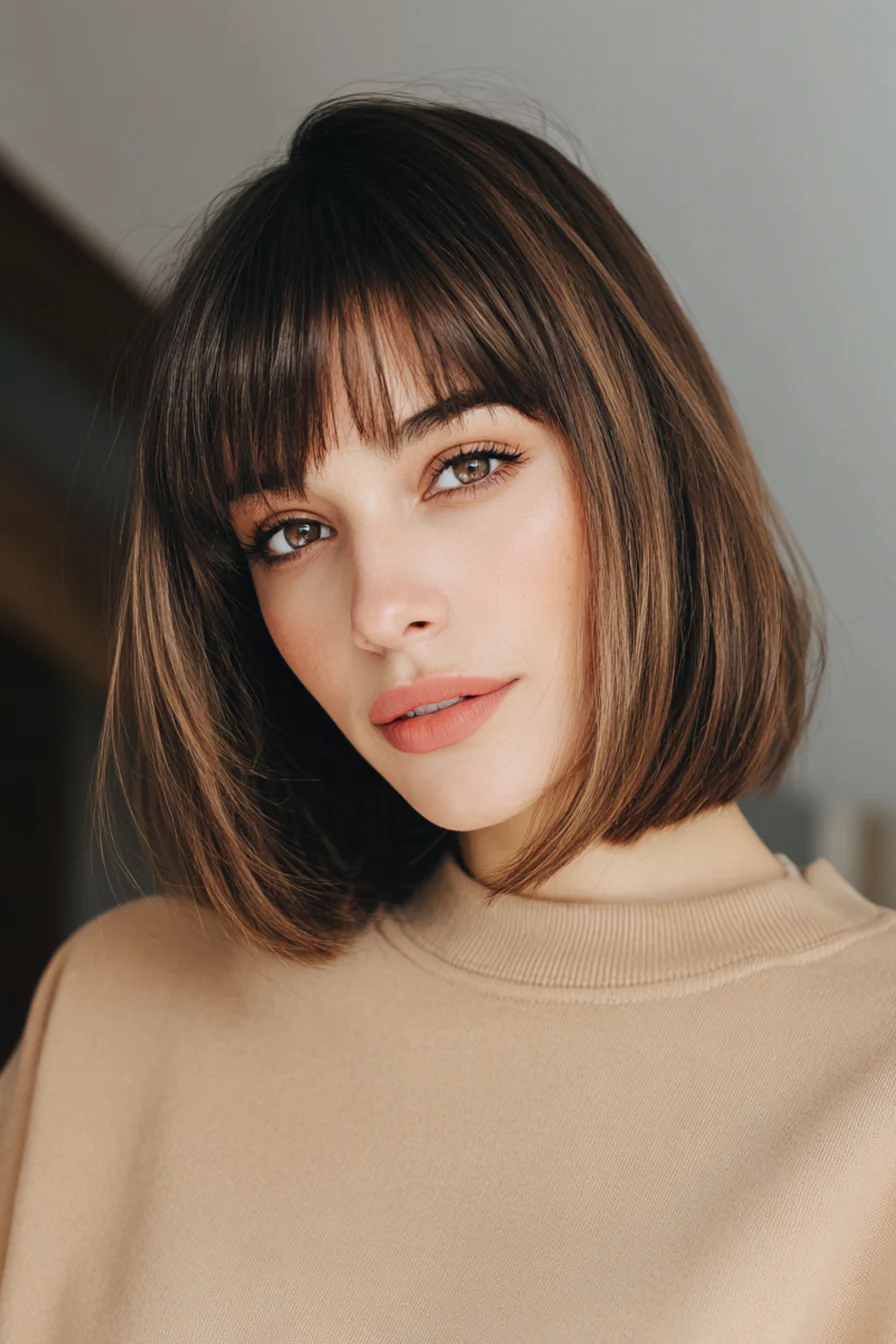 Для зрелых женщин она работает особенно деликатно, мягко смягчает черты лица и подчеркивает глаза, добавляет свежести, не требуя радикальных перемен. В сегодняшних трендах чёлка перестала быть чисто «молодёжной» историей. Теперь это тихое заявление о уверенности: вы не пытаетесь выглядеть как кто-то, вы подчеркиваете себя.