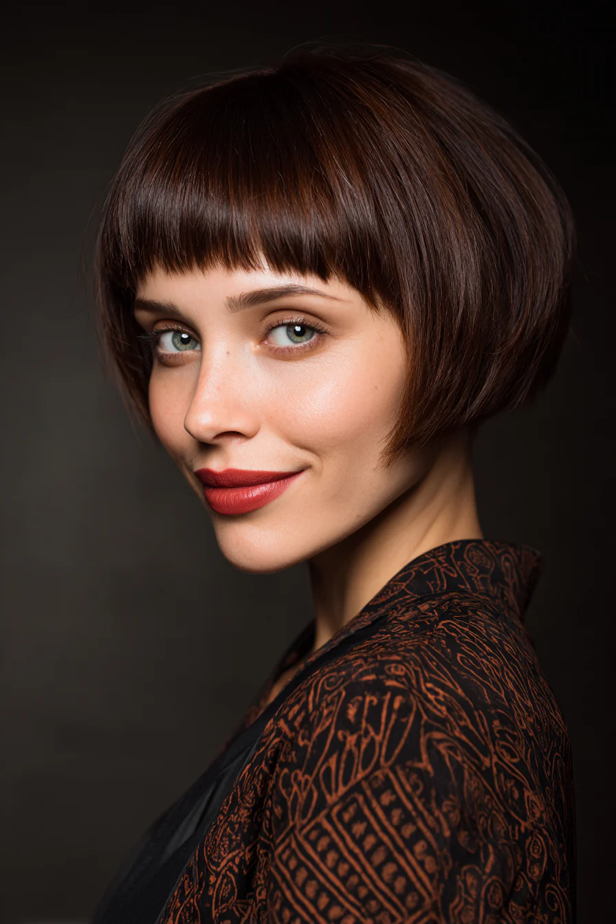 7. Современное каре с ультракороткой челкой в оттенке эспрессо