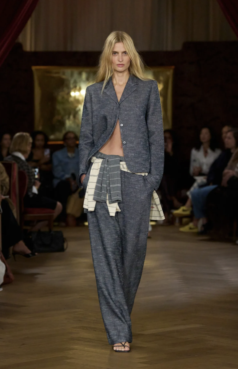 🧥 Костюм + свитер, обернутый вокруг пояса