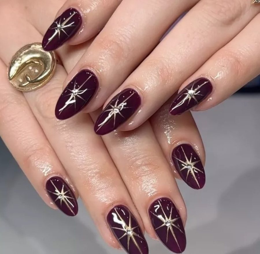 Металлические звёзды на насыщенной ягодной базе - как ночное зимнее небо.