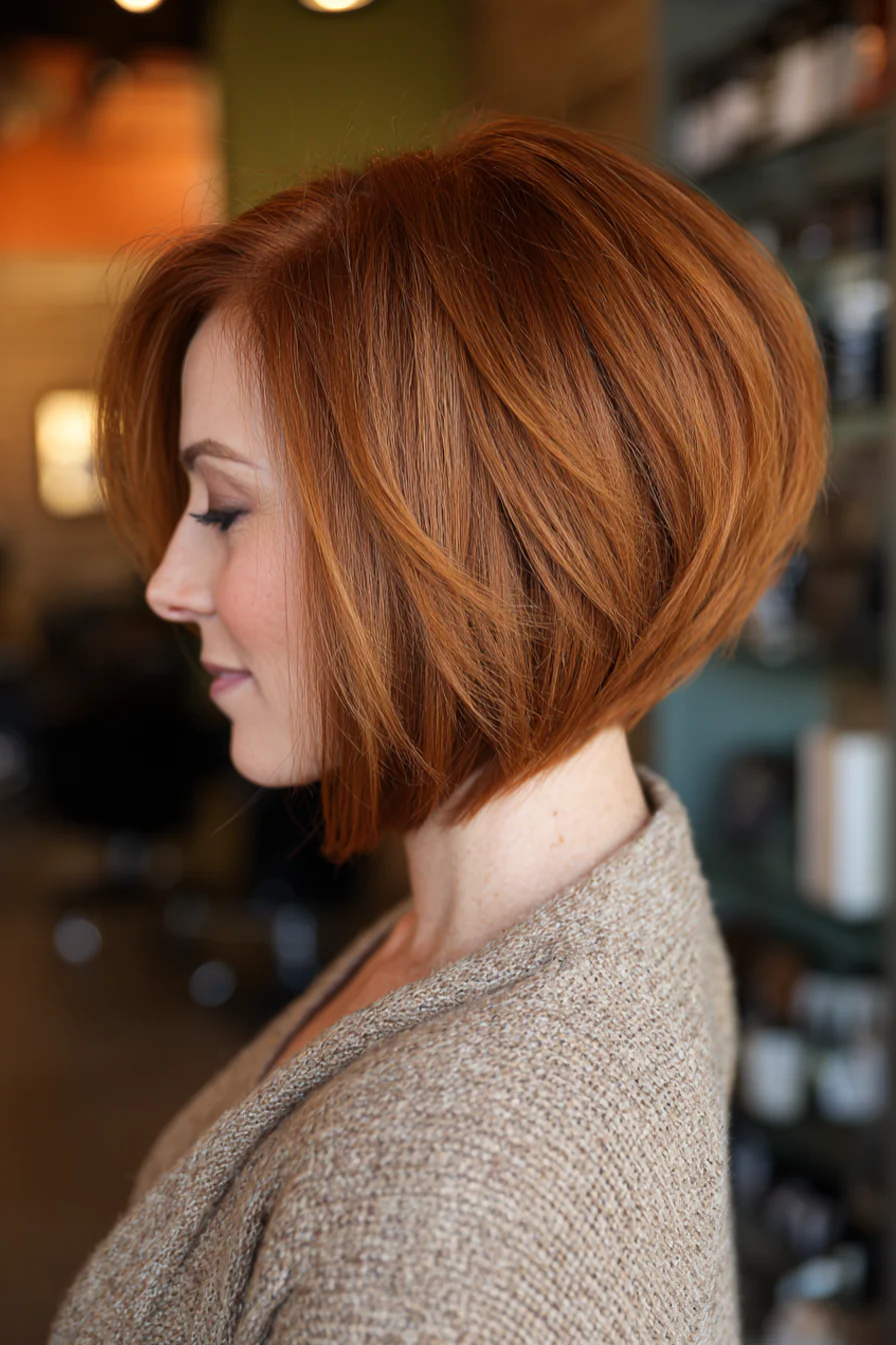 17. Боб с объёмом на затылке в медно каштановом цвете