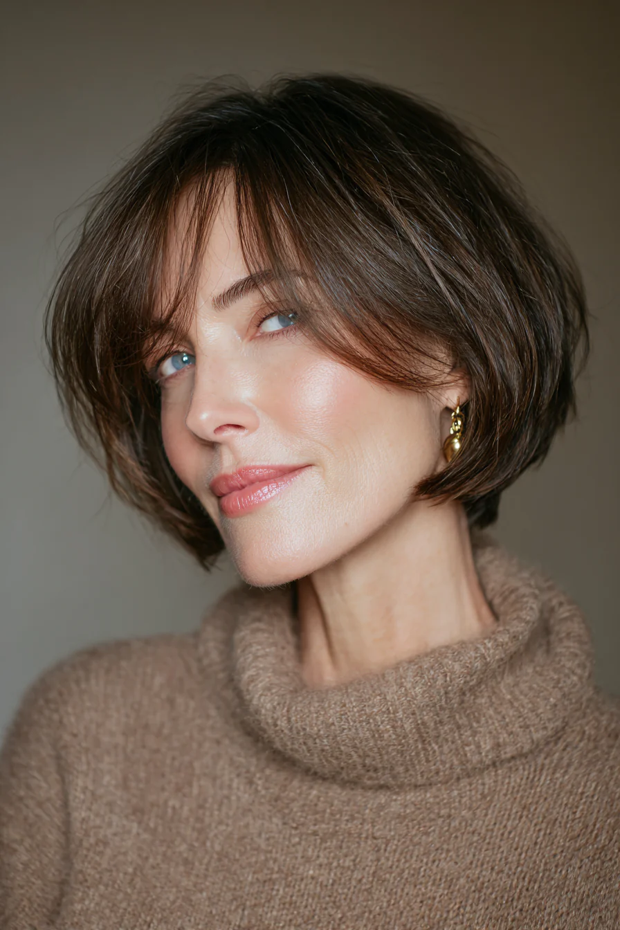 Классический французский боб опирается на длину до подбородка, ровную линию и минимальную градуировку. Он красиво открывает шею и подчёркивает линию скул. Цвет мокко остаётся универсальным, его легко сочетать и с ярким макияжем, и с натуральным.