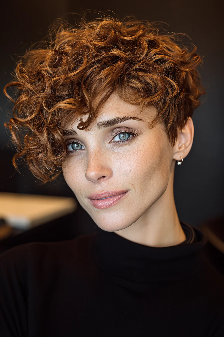 1. Пикси с андеркатом и объёмными кудрями, медно-каштановый
