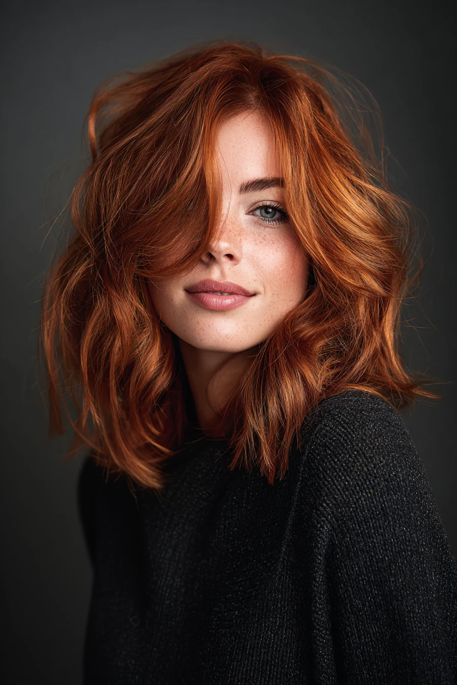 Если у вас естественная волна, слои помогают сформировать красивую текстуру без тяжести. Медный оттенок подсвечивает движение и делает локоны выразительнее.