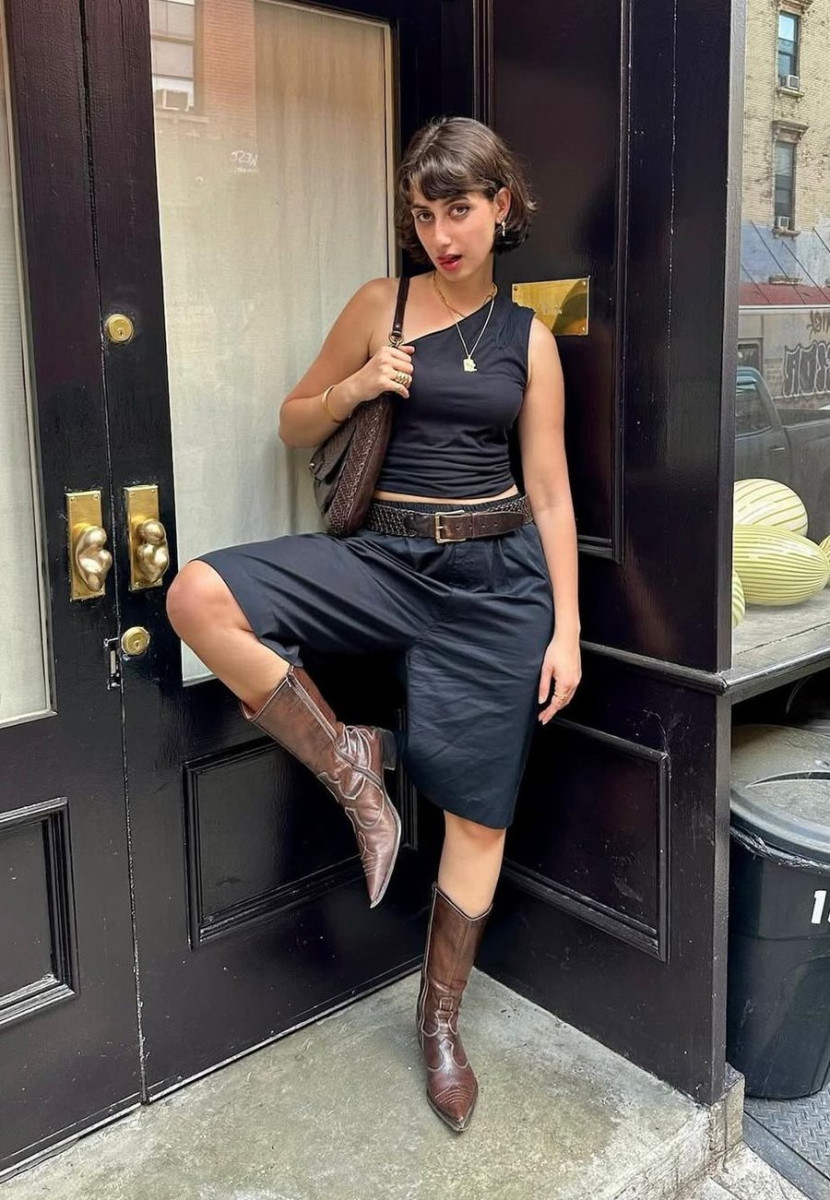 Брюки длиной до колена и высокие сапоги