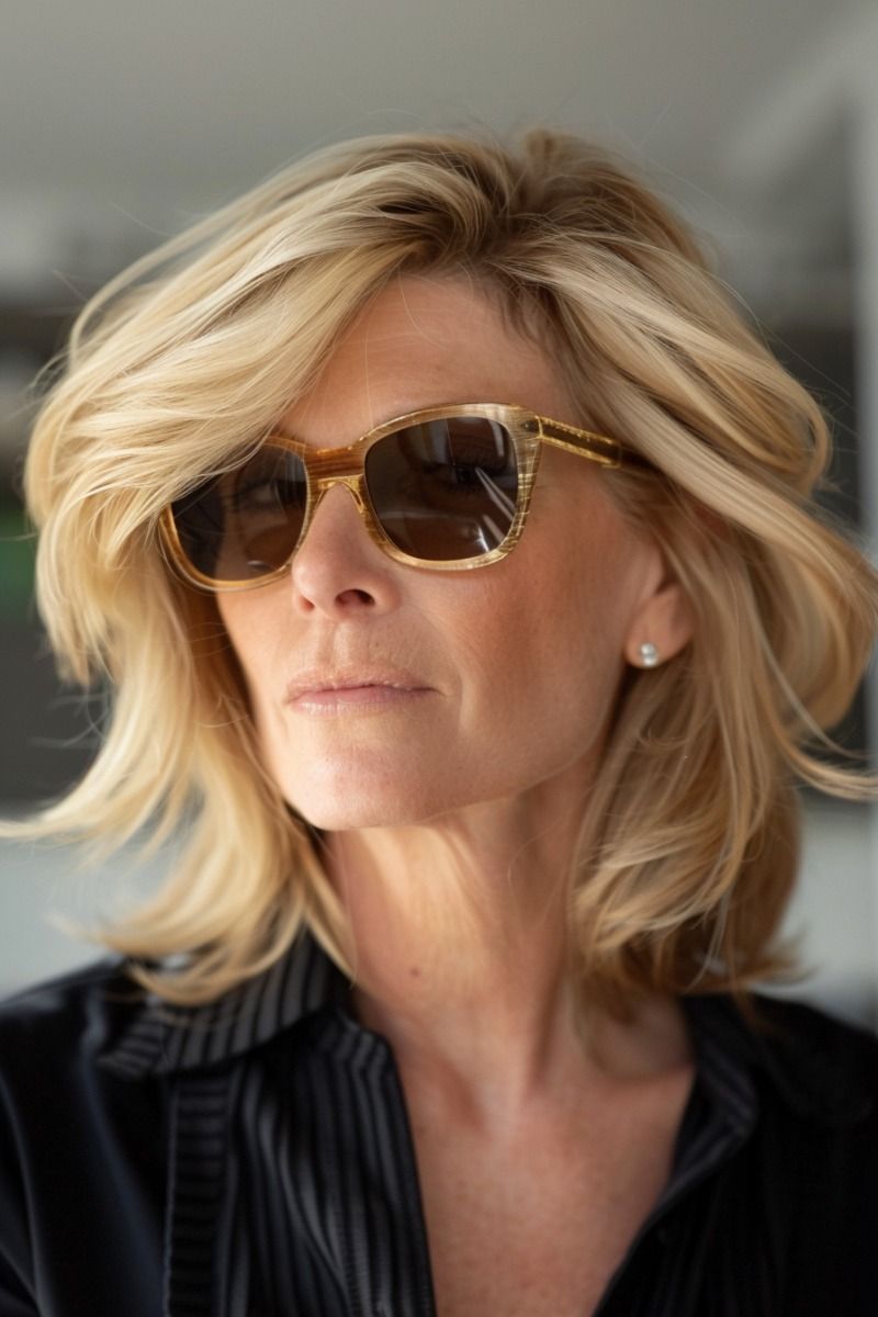 Этот цвет отлично маскирует седину, делая её менее заметной, и одинаково красиво смотрится как на коротких, так и на длинных стрижках. Медовый блонд не выглядит «плоско» и не подчёркивает возрастные изменения.