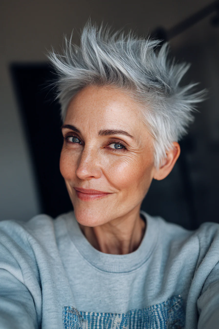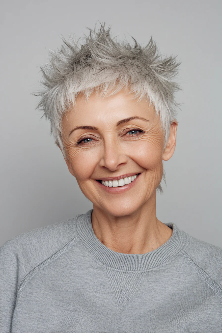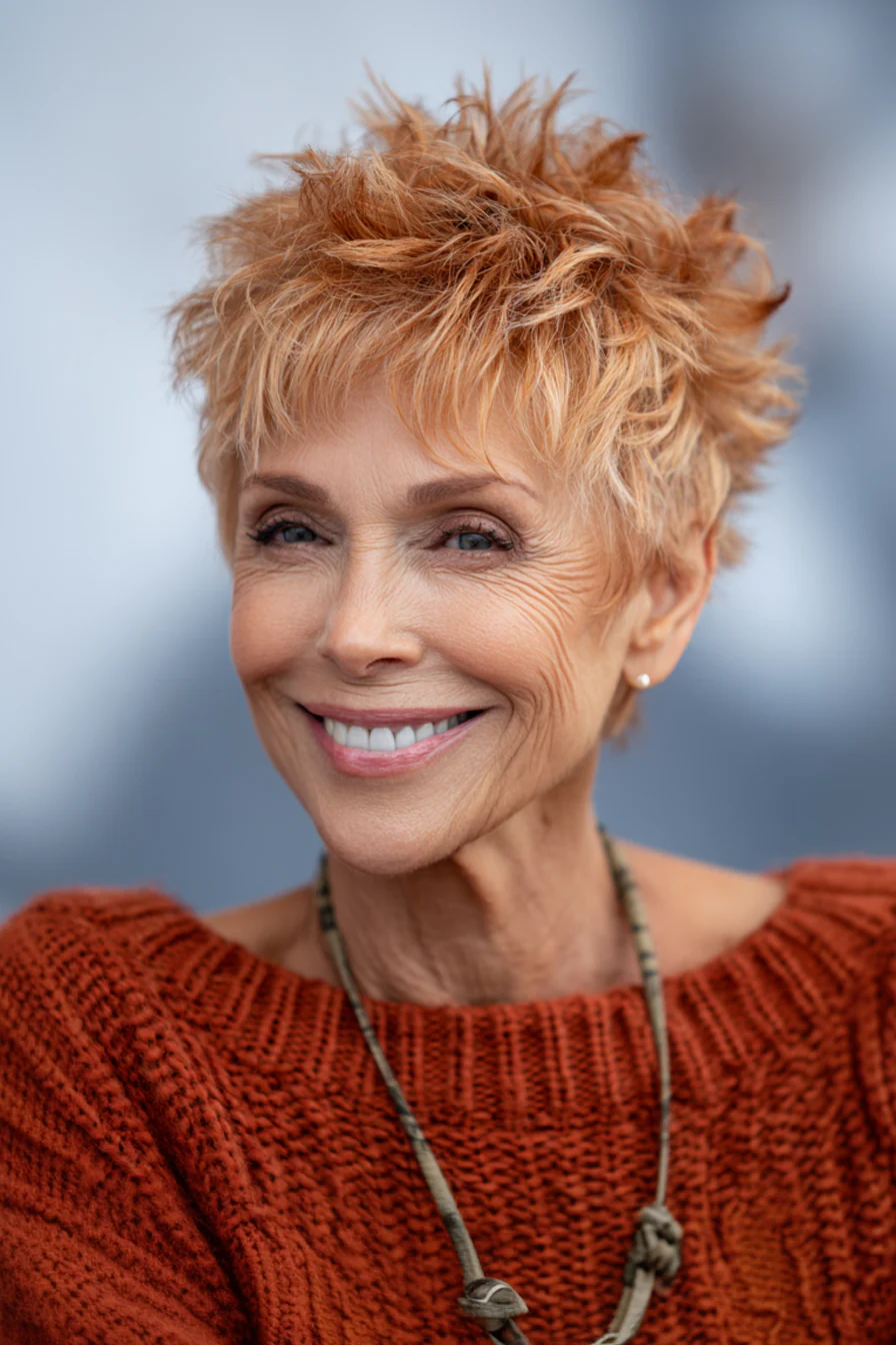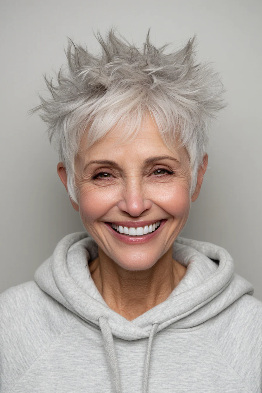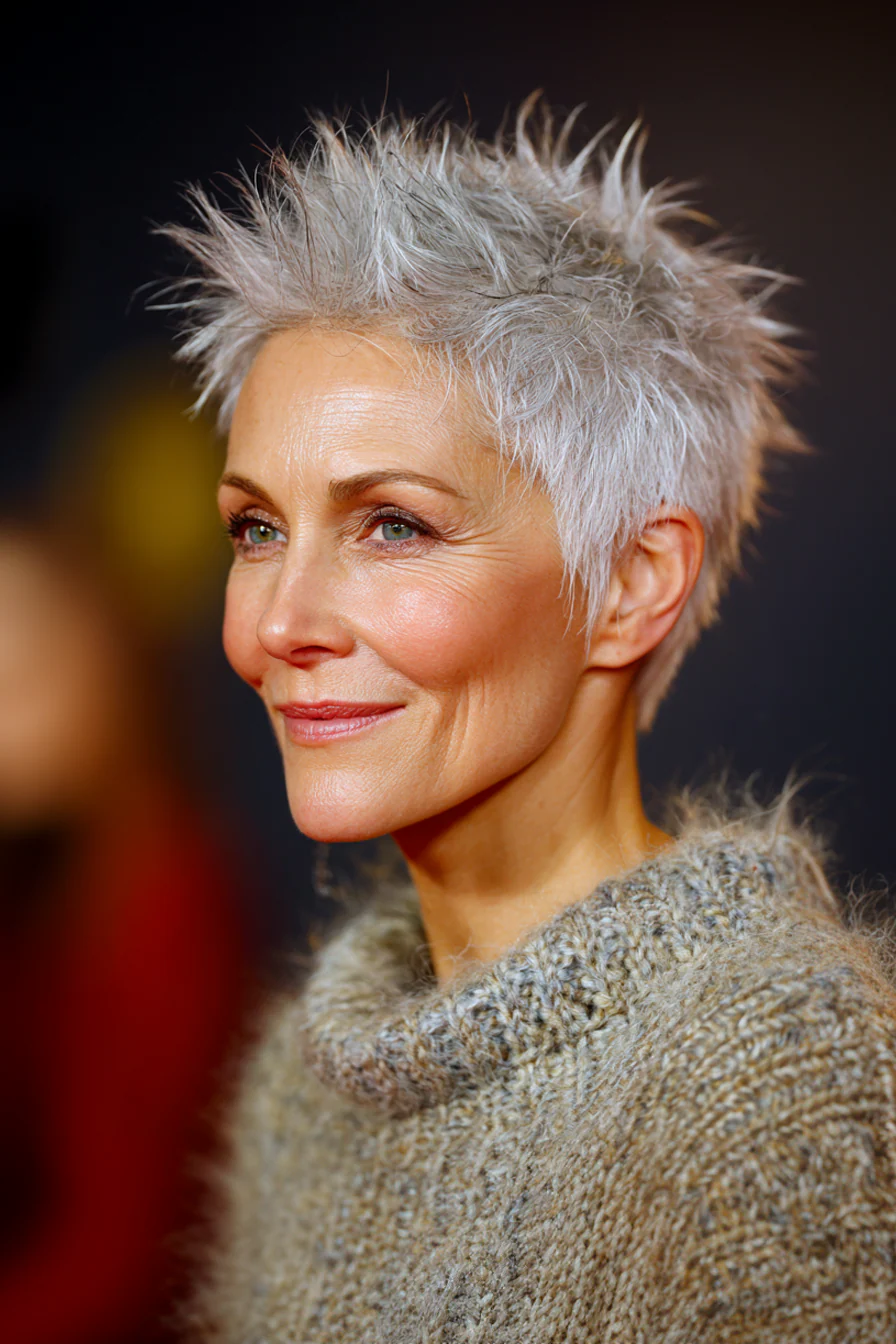 Короткие стрижки с приподнятыми прядями умеют делать то, что особенно ценно после 60: добавлять высоту там, где волосы начинают терять объём, и убирать лишний вес там, где он утяжеляет черты. Они практичны, но не скучны. Структурные, но живые. И, что важно, ускоряют утренние сборы, потому что выглядят «уложенными» даже в расслабленном варианте.