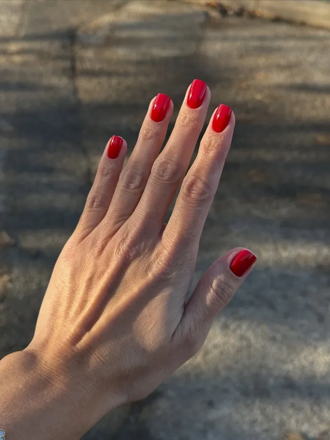 Тёмные оттенки на квадратной форме часто смотрятся дороже, чем на мягких овалах. Причина простая: плотный цвет получает чёткие границы, и выглядит как лаконичный аксессуар.