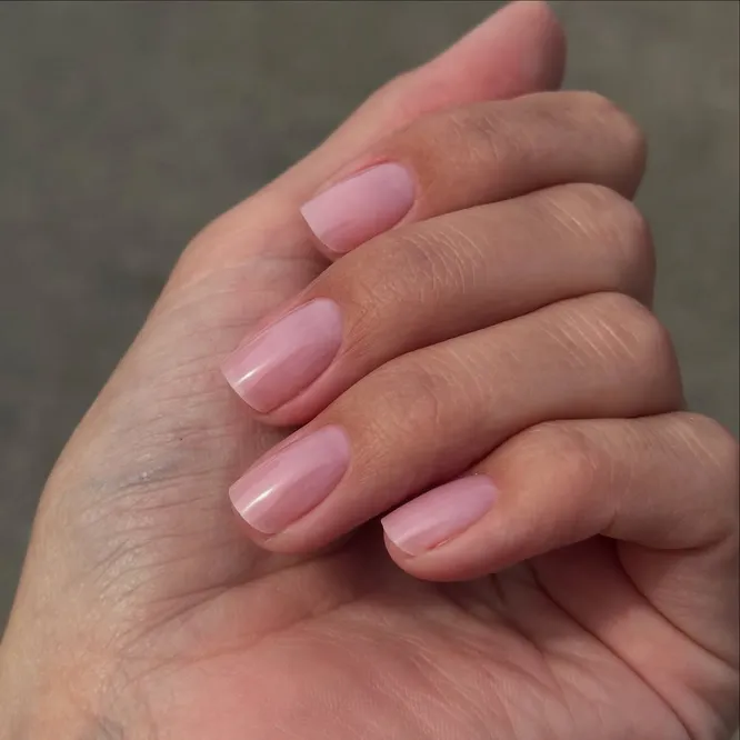 У «мыльного» покрытия своя магия: оно создаёт ощущение очень чистых, ухоженных рук, будто это не лак, а идеальная поверхность ногтя. И именно квадрат усиливает этот эффект, потому что задаёт линию, а прозрачность подчёркивает аккуратность.