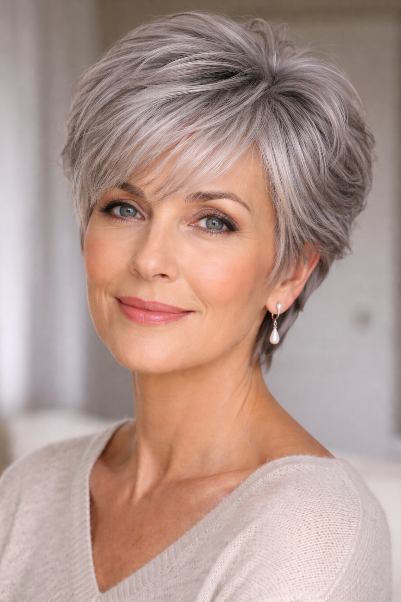 ✅ Мягкий пикси для седых волос