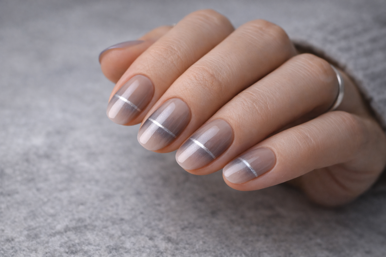 Если хочется тренда, который выглядит технологично, но носится спокойно, выбирай магнитные покрытия. В 2026 они ушли от “одинакового cat-eye” в более точные линии и «движение света». Barcode nails как раз про это: тонкая горизонтальная магнитная полоска, которая меняется при движении руки. Allure пишет, что тренд пришёл из Южной Кореи и набирает популярность, при этом в более минималистичном варианте смотрится очень носибельно.
