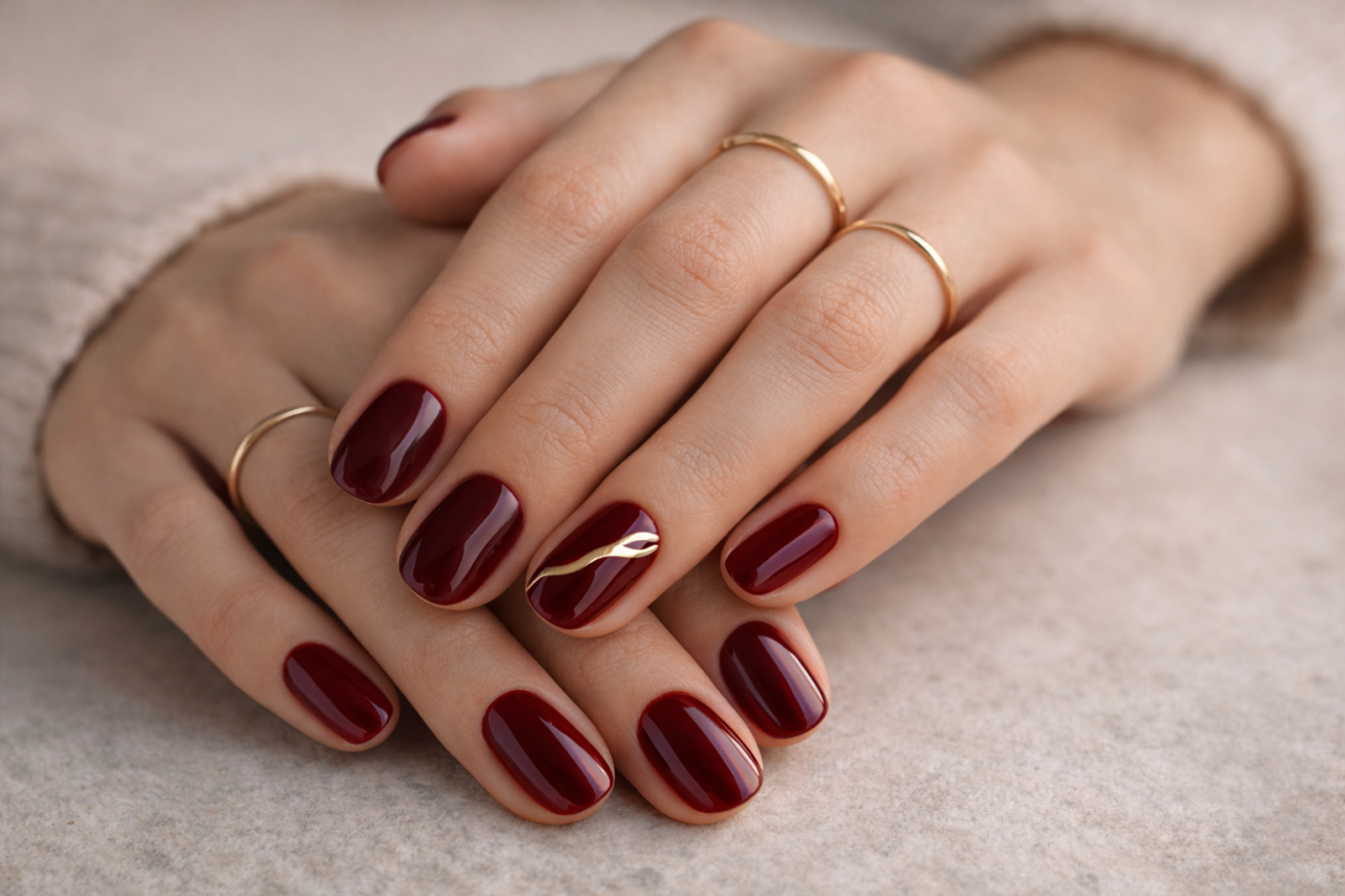 Cherry cola, тёмный, глубокий, почти винный, он выглядит как драгоценный камень и идеально дружит с зимними фактурами, шерстью, кожей, твидом. Нейл мастера прямо связывают популярность оттенка с холодным сезоном и многослойностью в одежде.
