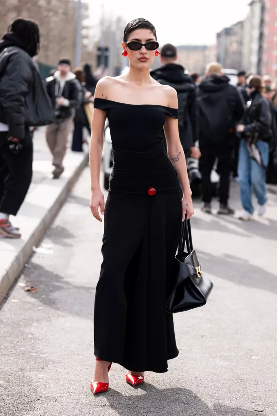 Если не платье, то хотя бы деталь: сумка, помада или украшение. Красный в этот день работает безотказно.