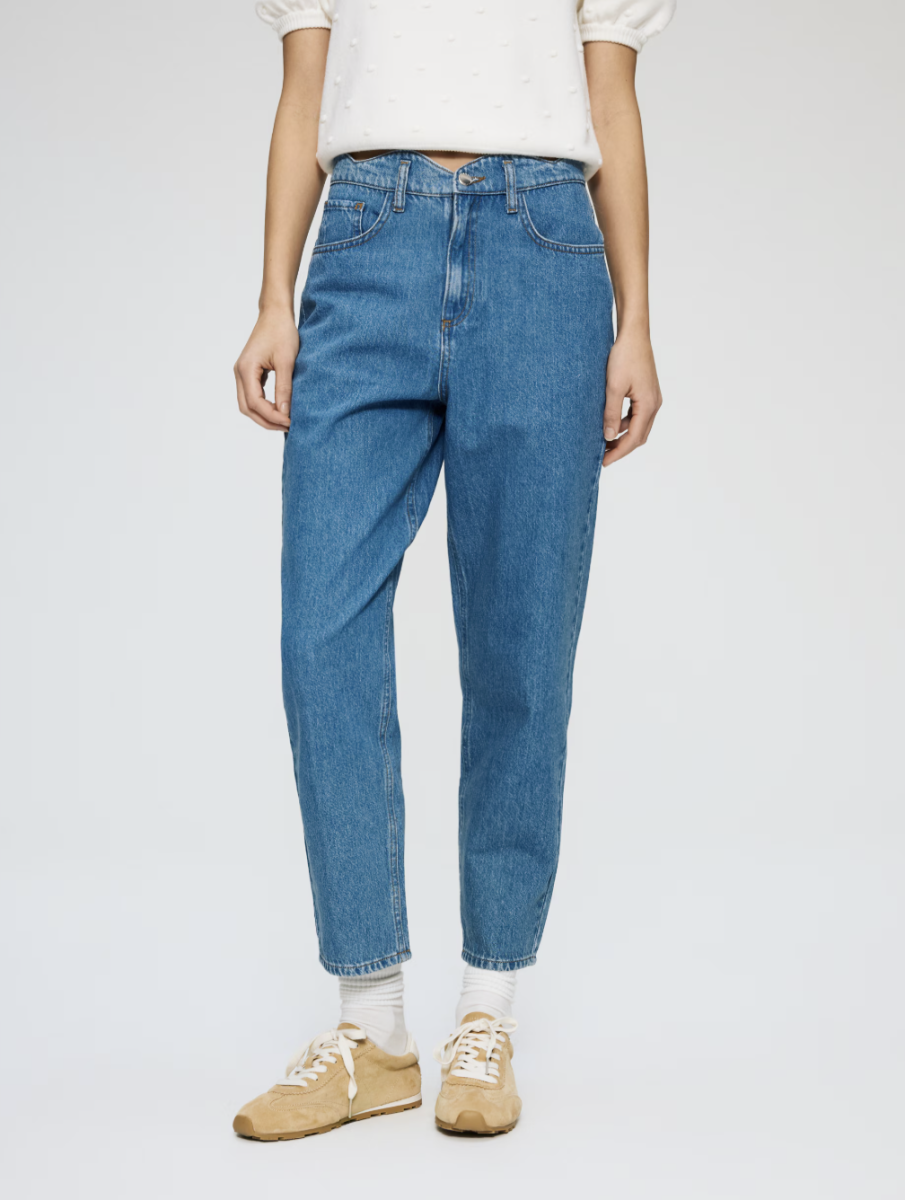 Для тех, кто ценит комфорт, но ищет маленькую «изюминку», дизайнеры переосмыслили классический mom-fit. Привычный силуэт с высокой посадкой и удобными карманами дополнили декоративной волной на поясе. Это ненавязчивое отступление от канонов делает модель более женственной и мягкой. Такие джинсы идеально смотрятся с заправленными внутрь топами, позволяя деталям кроя играть главную роль.