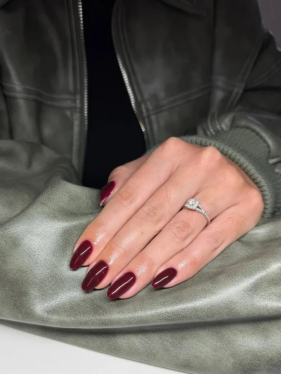 Насыщенный красный с винным подтоном - выбор для уверенного и чувственного образа. Такой маникюр смотрится эффектно и прекрасно сочетается с вечерними нарядами.
