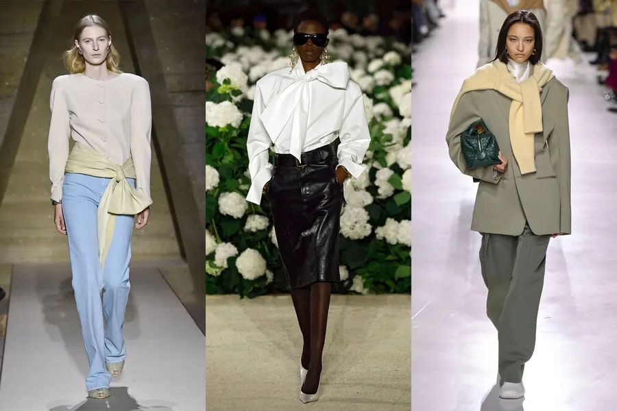Плечи с акцентом, костюмы с характером, строгие линии - деловой шик возвращается. Но теперь он сочетается с более расслабленной подачей и современными тканями.