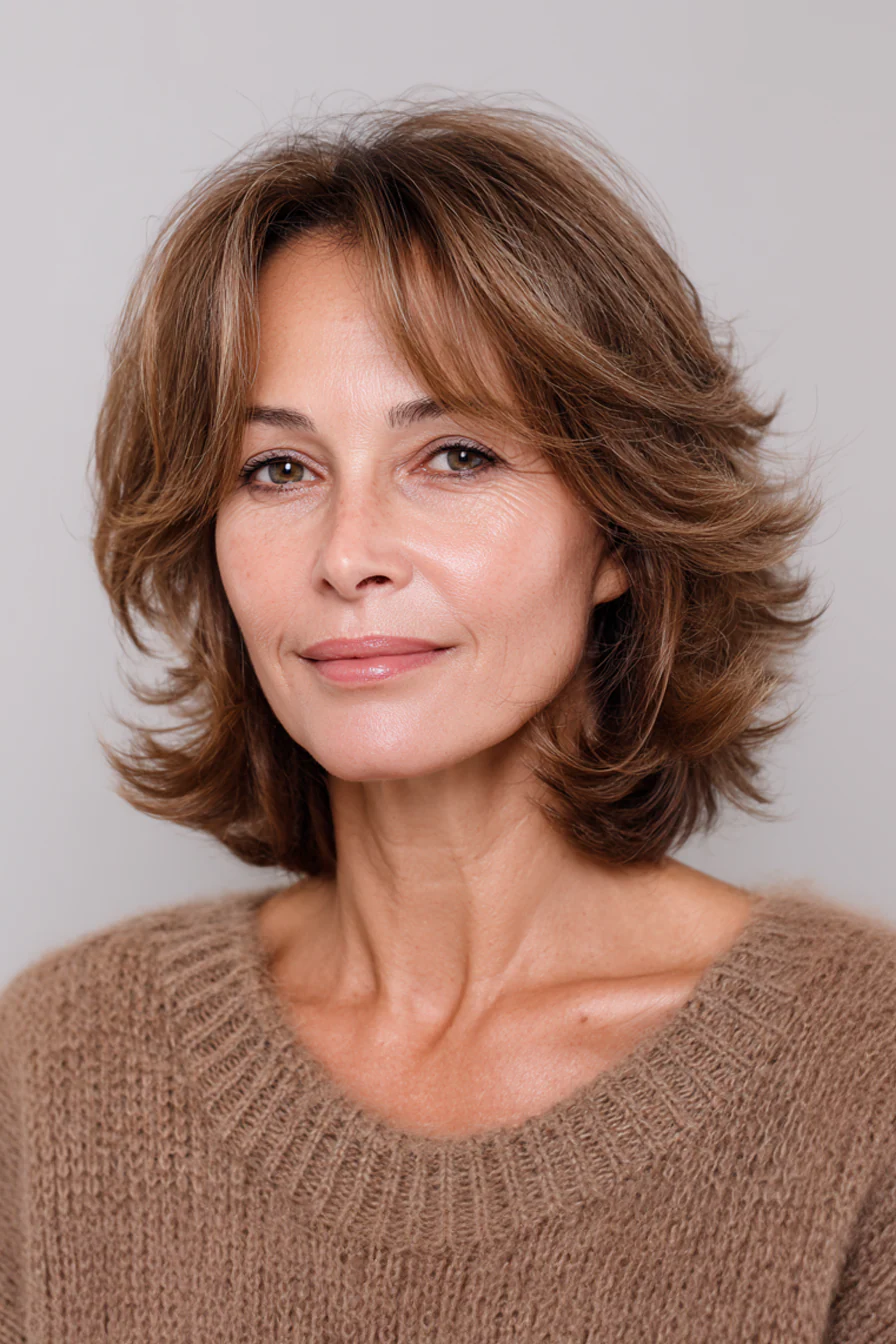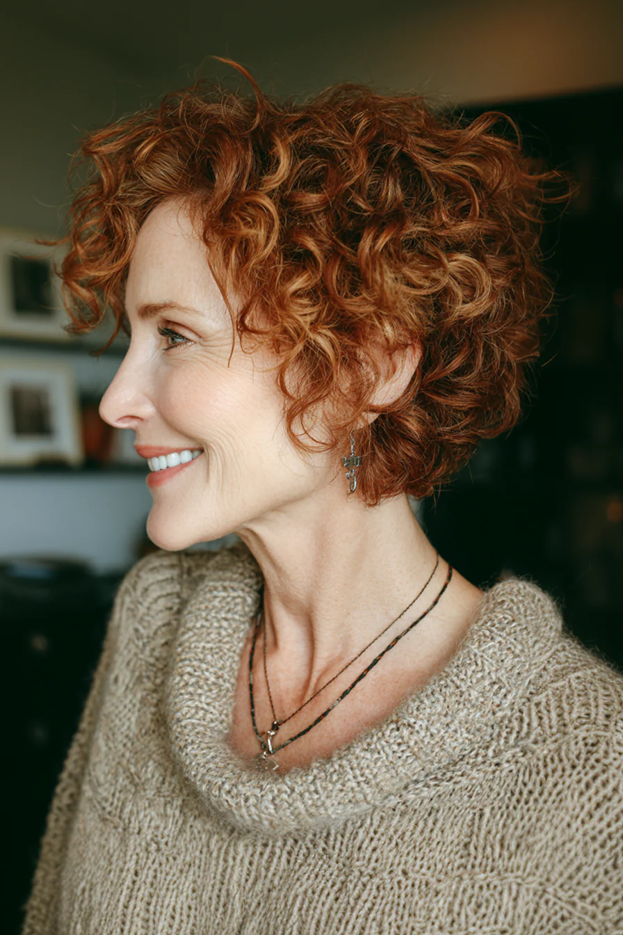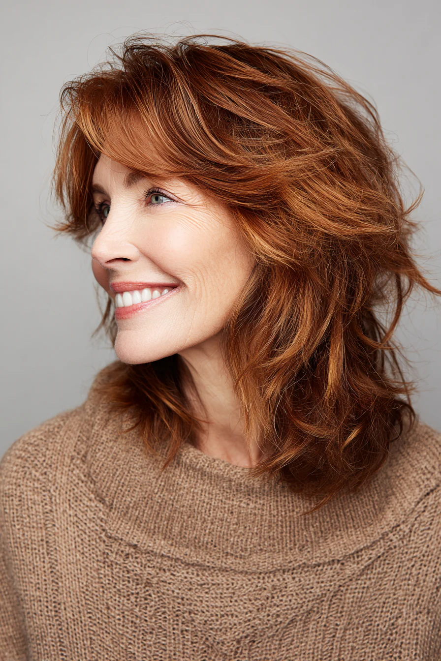 Кудрявый шэг работает, когда слои поддерживают завиток, а не разваливают его. Тёплый обёрн добавляет глубину, кудри выглядят объёмнее и фактурнее.