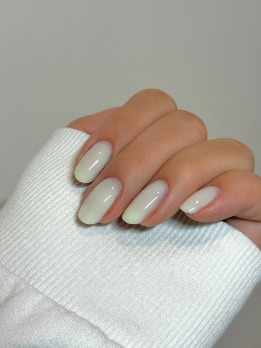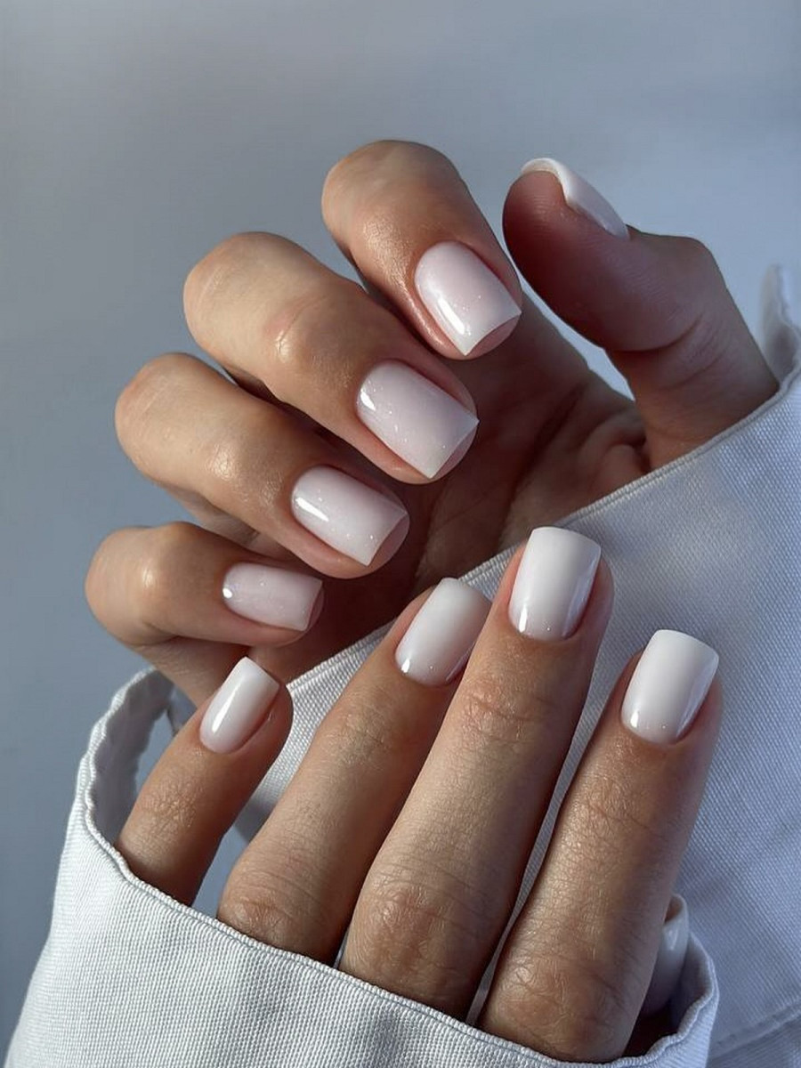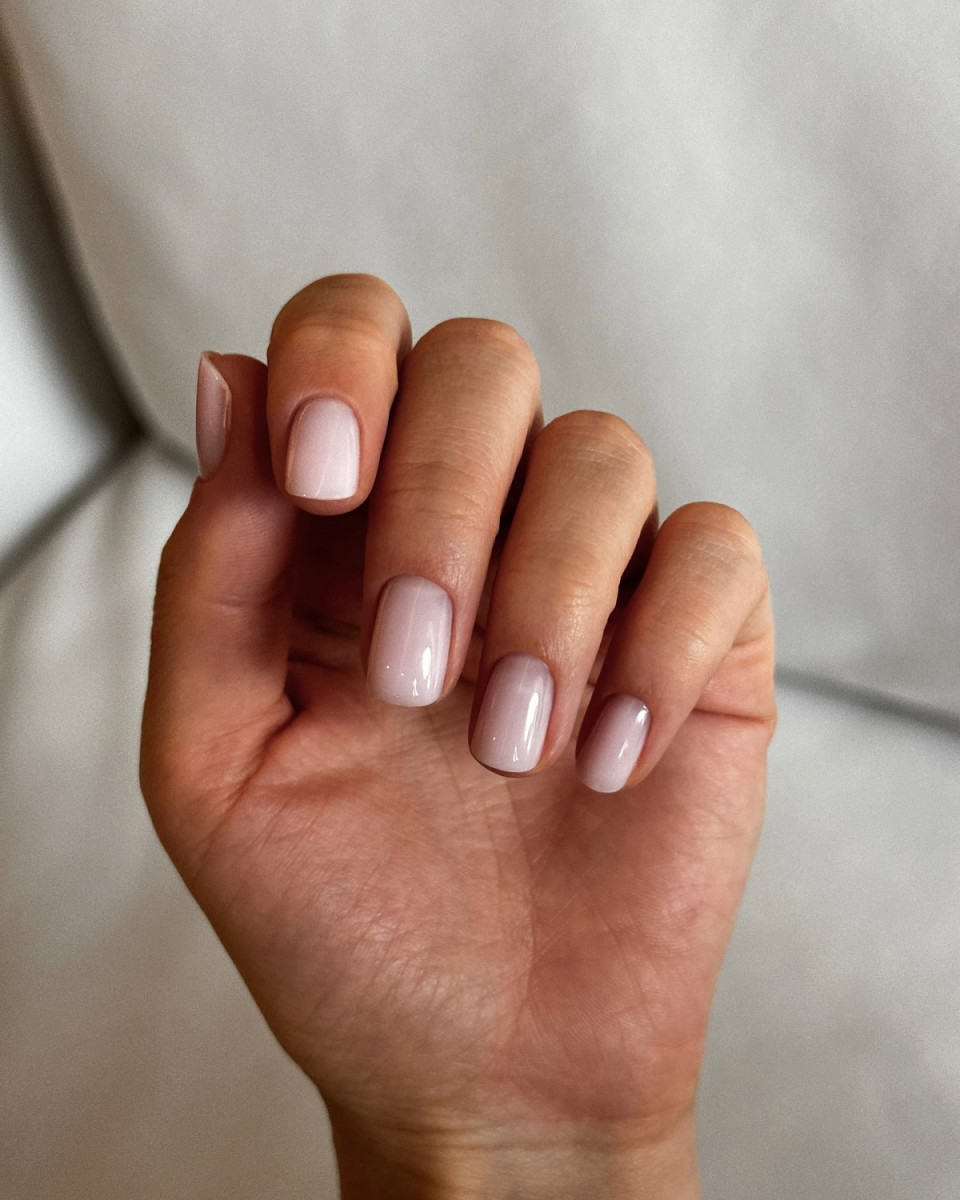 Молочный беж светлее классического нюда, но мягче белого. За счет теплоты он делает руки визуально ухоженнее, а кожу ровнее.