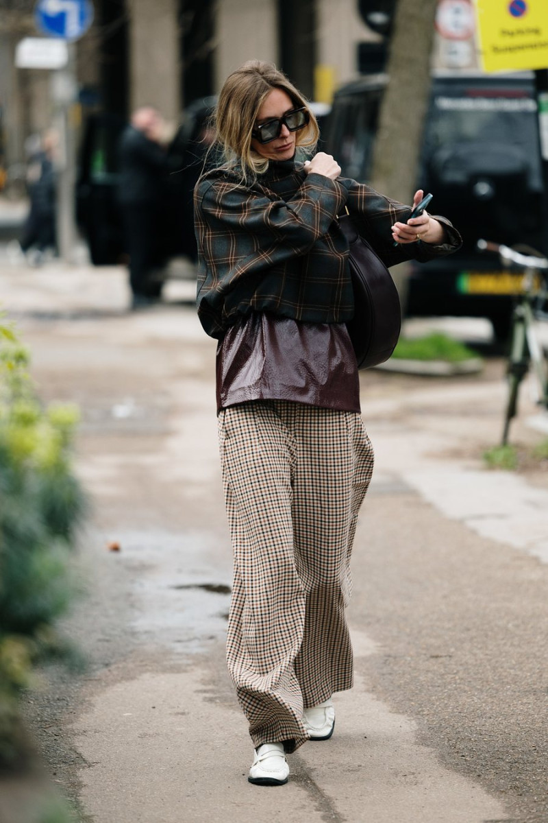 Клетчатые брюки и многослойность фактур - игра текстур как главный модный приём сезона.