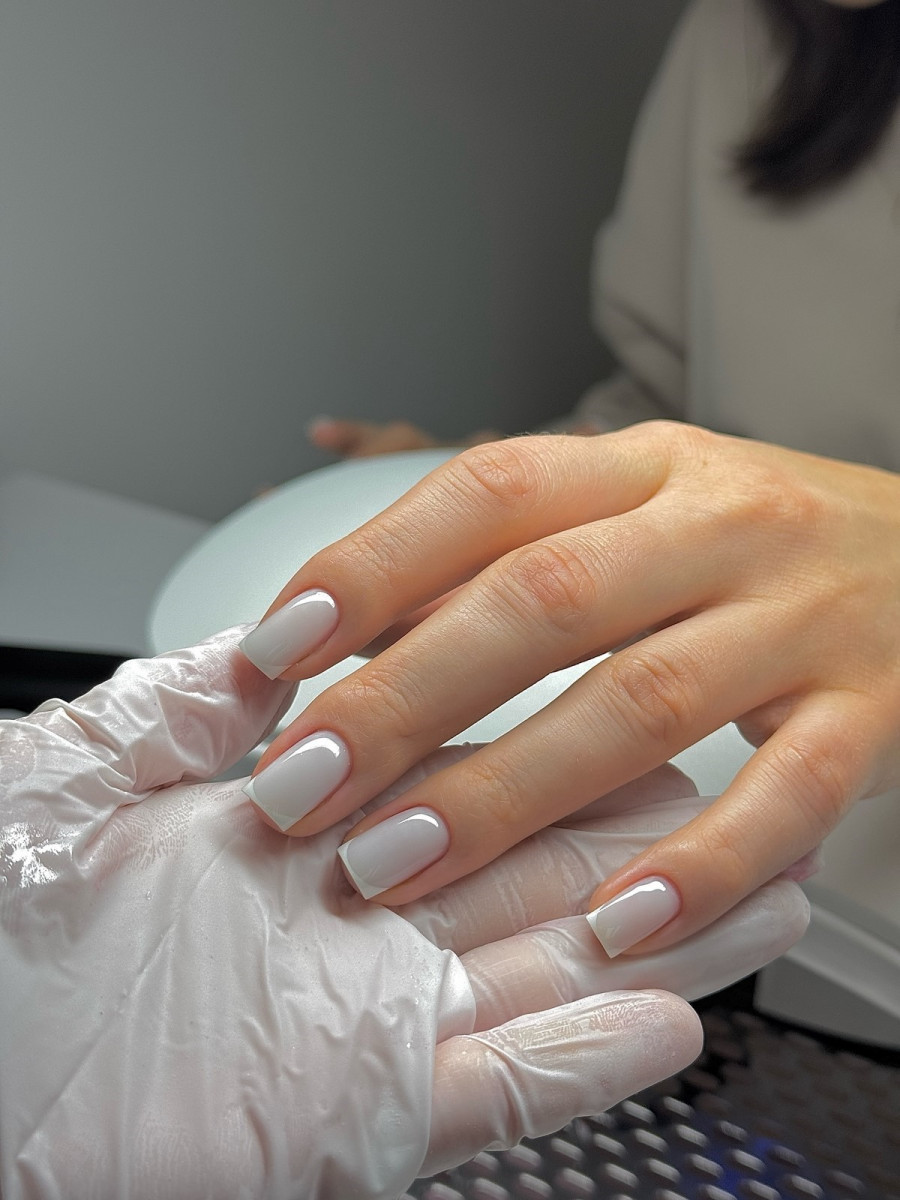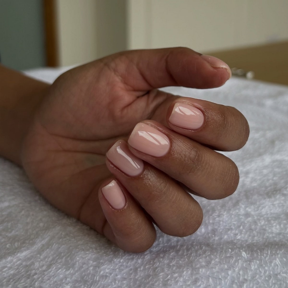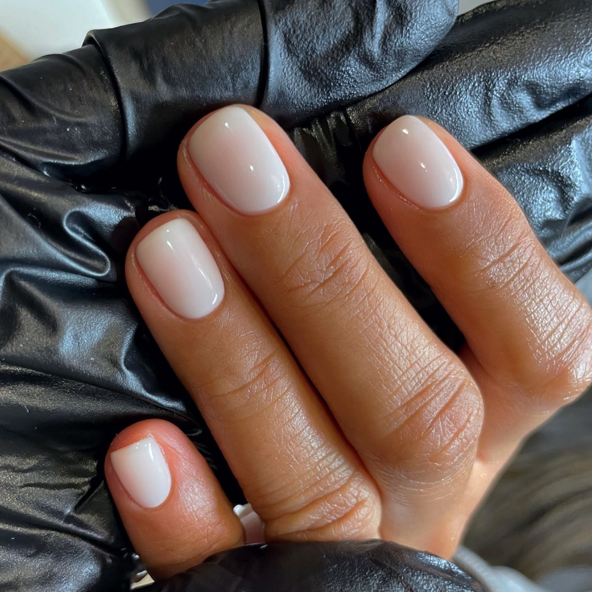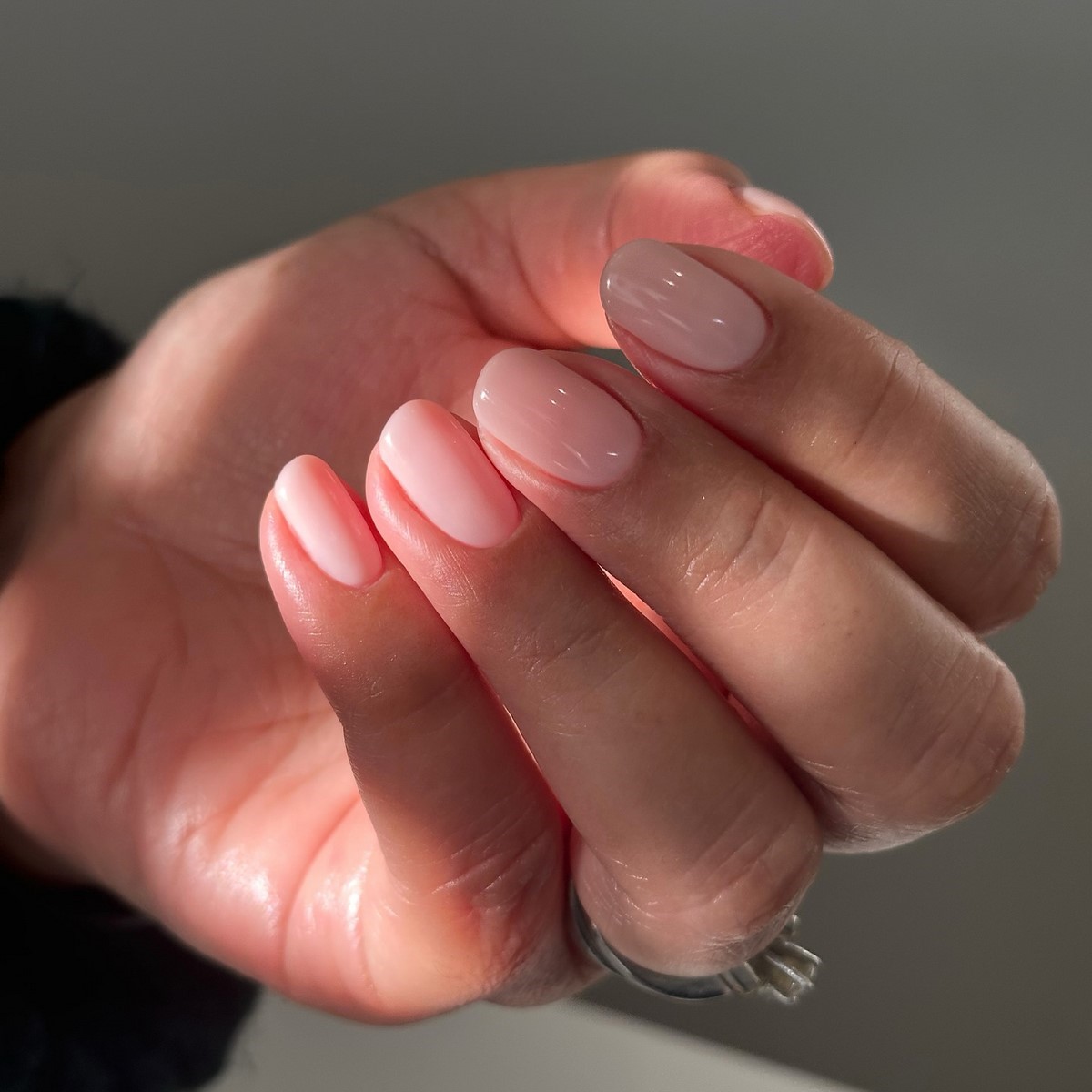 На короткой и средней длине, особенно с мягким квадратом или овалом, он выглядит аккуратно, но не стерильно. Теплая база не уводит покрытие в сероватость и меньше подчеркивает сосудистый рисунок.