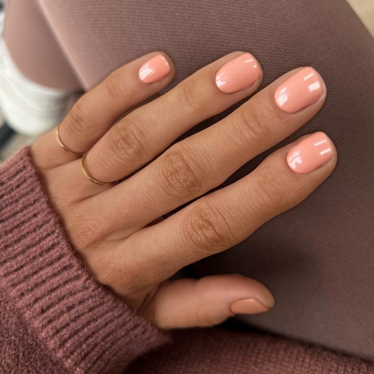 Персиковый часто недооценивают, хотя именно он умеет делать руки визуально более живыми. Это оттенок с эффектом легкого фильтра, будто кожа стала теплее и свежее.