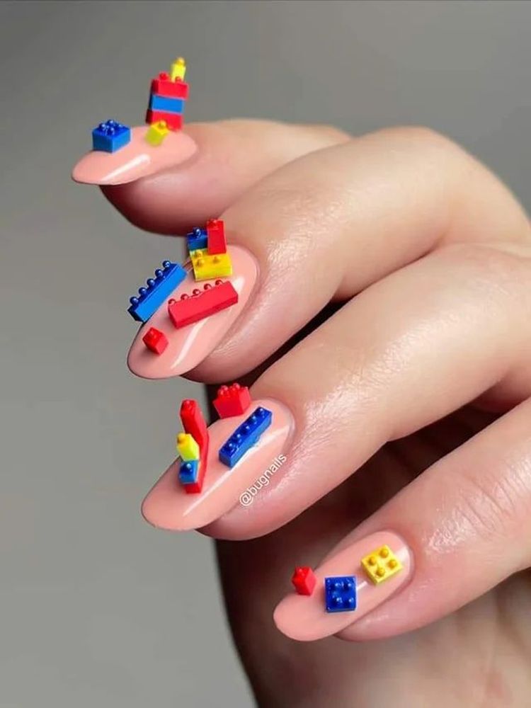 LEGO-маникюр выглядит ярко и по-детски задорно. Остается надеяться, что наступать на такие детали не придется.