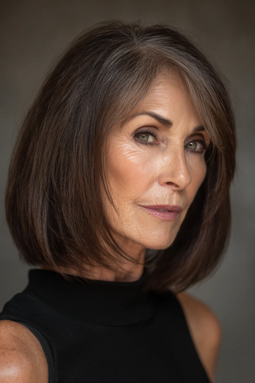 В 2026 стилисты всё чаще работают не против изменений, а вместе с ними. В приоритете текстура, мягкие слои, живое движение, аккуратный силуэт, который держится без сложных средств и многочасовой укладки. А натуральные оттенки, серебро, седина, русые и каштановые тона, глубокий тёмный цвет, выглядят особенно благородно, если стрижка «собрана» грамотно.
