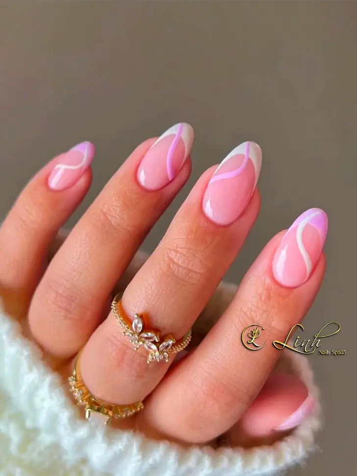 Когда хочется чего-то нежного, но не банального, на помощь приходят волны. Лавандовый оттенок рядом с белым френчем смотрится очень мягко, визуально освежает руки и делает маникюр чуть более живым. Это как раз тот случай, когда минимальный декор дает максимальный результат.