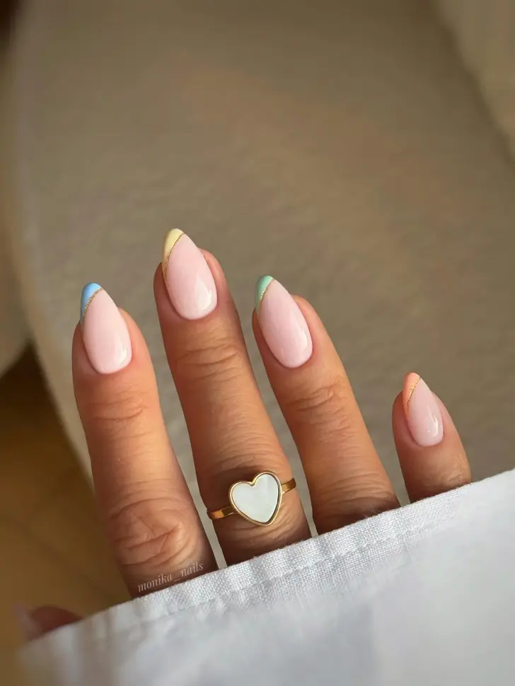 1. Косой френч в пастельных оттенках и тонкая золотая линия