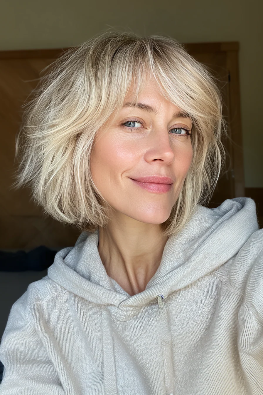 5. Мягкий рваный боб в бежевом блонде